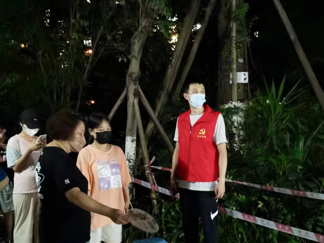 由于封控小區(qū)大多數(shù)居民選擇網(wǎng)上下單購買物資,大量物資堆放在小區(qū)大門,為確保大家生活物資供應正常,黃黌贇化身“配送員”,第一時間攬下了這項體力活。白天閑暇時在烈日暴曬下推著大型購物車穿梭在小區(qū)內(nèi),為居民運送物資,保障居民正常生活,與其他志愿者一道,共同守護者小區(qū)居民生活物資保障中的“最后100米”。傍晚,黃黌贇化身“引導員”,協(xié)助搭建遮陽傘,搬運防疫物資,布置核酸檢測場地,維持現(xiàn)場秩序,引導居民進行核酸檢測,提供暖心服務,助力核酸采集工作高效開展。往往一天的工作還未結(jié)束,他的手掌被泡得發(fā)白發(fā)皺,汗水早已經(jīng)浸透全身。