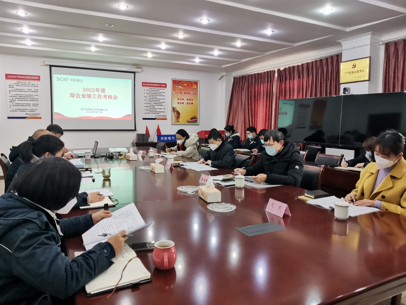 在考核過(guò)程中,各企業(yè)黨委(黨總支)書(shū)記代表企業(yè)作了述職、述責(zé)、述廉工作報(bào)告,全面匯報(bào)了全年生產(chǎn)經(jīng)營(yíng)數(shù)據(jù)、重點(diǎn)工作完成情況等,從中總結(jié)經(jīng)驗(yàn)、查找不足、分析原因、尋找解決方案,同時(shí),對(duì)2023年的企業(yè)發(fā)展做出了規(guī)劃;班子成員分別進(jìn)行了年度個(gè)人述職、述責(zé)、述廉匯報(bào);與會(huì)人員對(duì)企業(yè)黨建工作、企業(yè)經(jīng)營(yíng)班子綜合素質(zhì)等進(jìn)行了民主測(cè)評(píng);各考核工作小組分別與各企業(yè)部分班子成員、員工代表等進(jìn)行了談心談話(huà),并代表川投能源向各企業(yè)困難職工送上了新春的慰問(wèn)祝福。