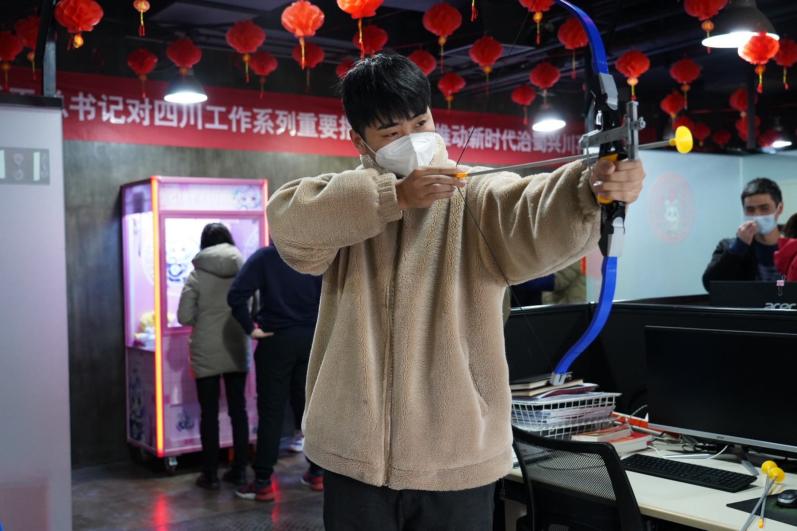 玉兔賀歲迎新年,生肖兔的形象自然成為新年中不可或缺的元素。在非遺體驗(yàn)區(qū)和新年祈福區(qū),傳統(tǒng)剪紙、春聯(lián)、燈籠技藝與生肖兔的結(jié)合,更是把中華傳統(tǒng)文化體現(xiàn)得淋漓盡致。精美剪紙活靈活現(xiàn)、揮毫潑墨筆走龍蛇,大家紛紛展示自己“得意之作”,表達(dá)辭舊迎新、接祥納福的美好祝愿。而游戲互動(dòng)區(qū)的“萌力十足娃娃機(jī)”“穿越火線”“戰(zhàn)弓烈焰” 等趣味游戲,不僅讓大家得到了身心放松、精神愉悅,也展現(xiàn)著川投能源人的團(tuán)結(jié)協(xié)作和良好風(fēng)貌。