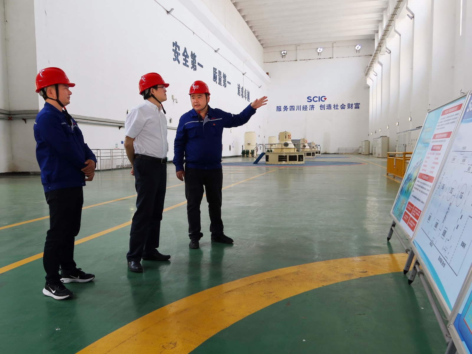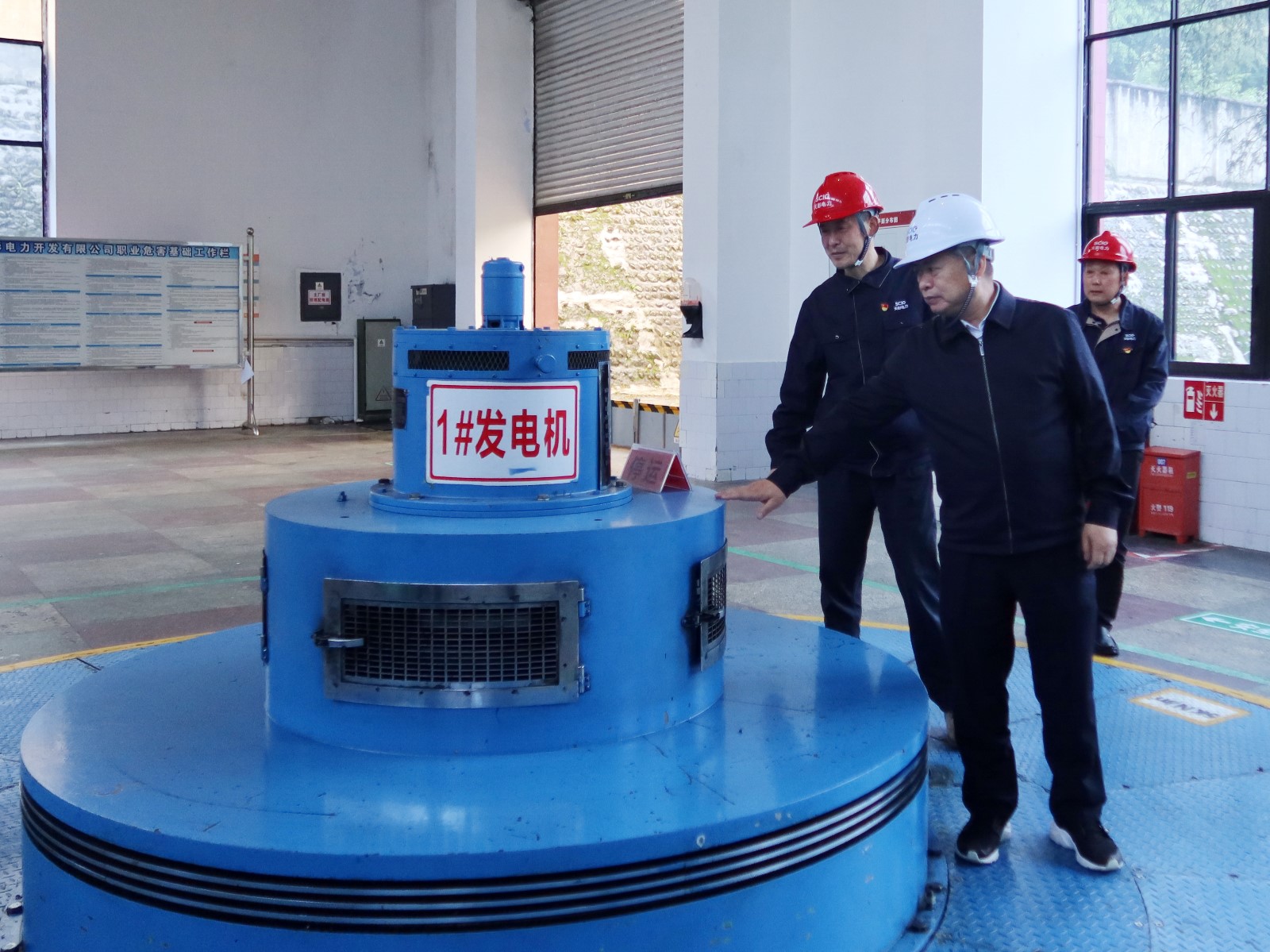 楊洪一行來到發(fā)電廠房,檢查機(jī)組運(yùn)行狀態(tài)和隱患排查治理情況,查看《職業(yè)病防治法》宣傳周開展情況。向一線干部員工致以“五一”勞動(dòng)節(jié)祝愿。
