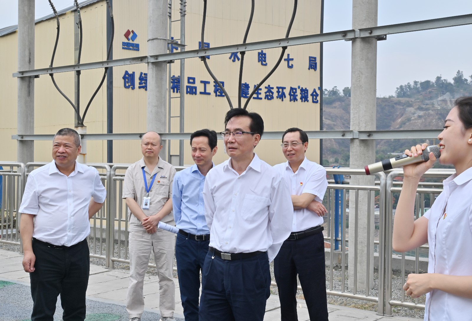 吳曉曦一行先后來到銀江水電站施工變電站觀景平臺、上游圍堰詳細了解項目整體規(guī)劃、建設意義、工期計劃、目前施工進度、安全環(huán)保及防洪度汛等情況。