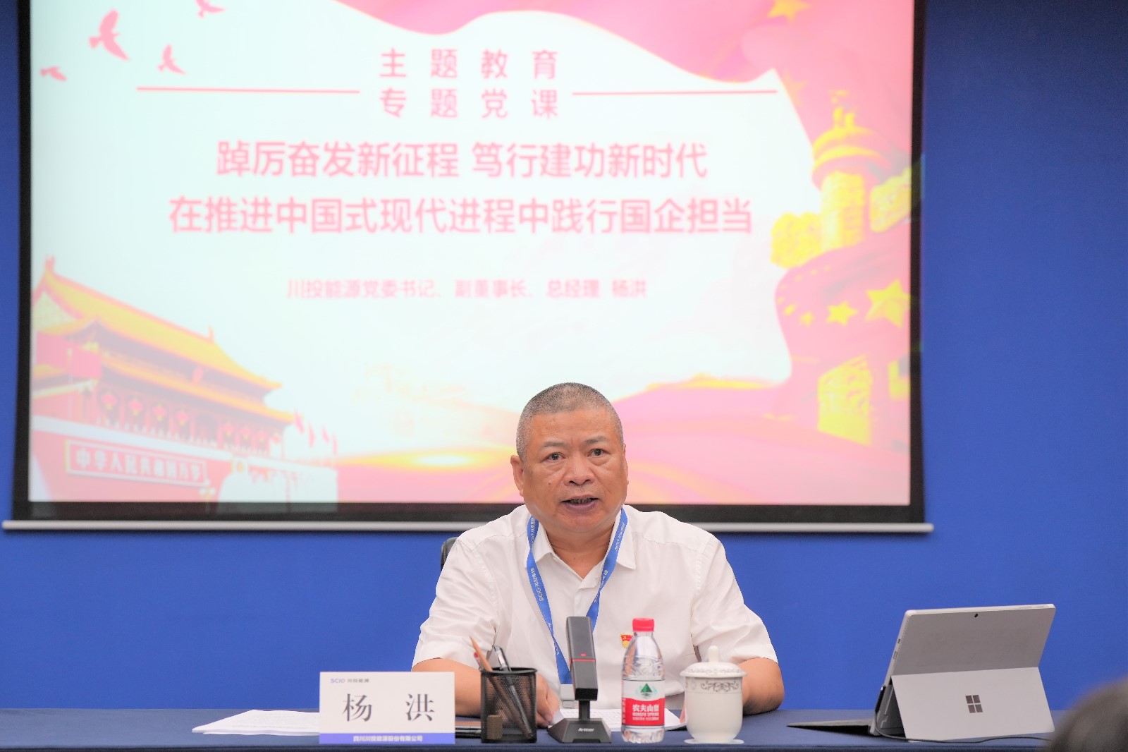 隨后,他以《踔厲奮發(fā)新征程、篤行建功新時代,在推進中國式現(xiàn)代進程中踐行國企擔當》為題,結合自身學習工作實際,從“中國式現(xiàn)代化理論體系的發(fā)展演進歷程”“認識把握中國式現(xiàn)代化的中國特色、本質要求、重大原則”“在中國式現(xiàn)代化進程中貢獻川投能源力量”等3個部分進行講授。