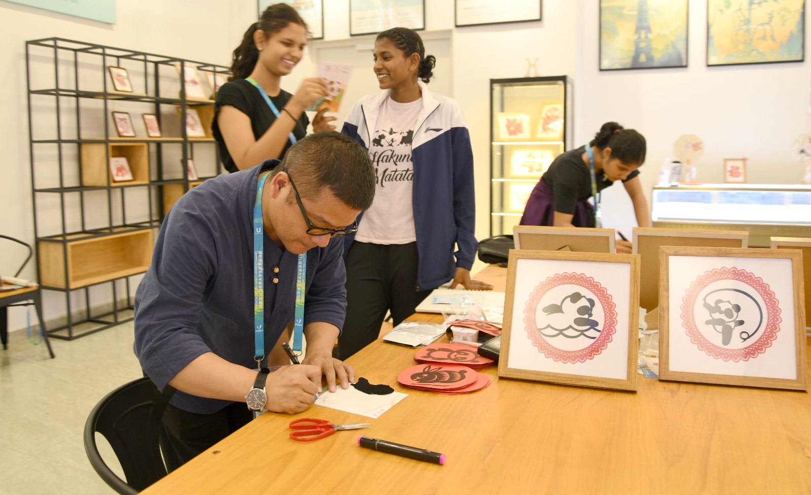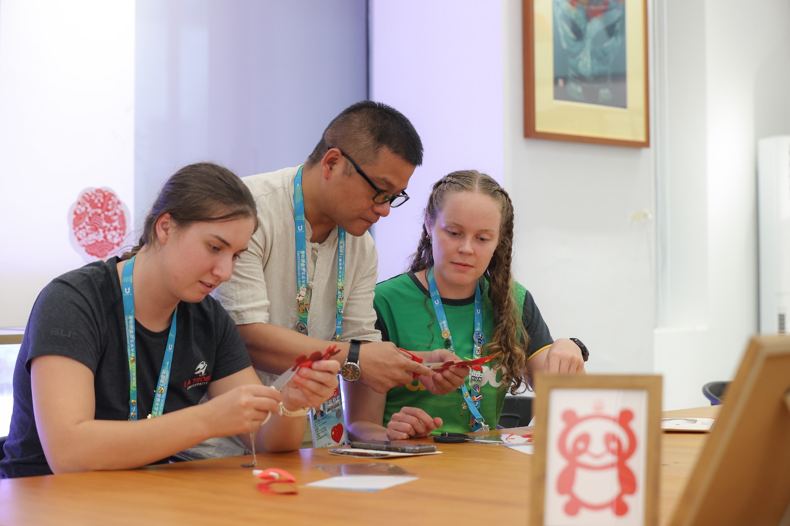 大運(yùn)會(huì)期間,成都大運(yùn)村里掀起一股“非遺熱”,引得各大媒體前來競(jìng)相報(bào)道?;?dòng)體驗(yàn)中心里,神奇的剪紙也吸引了中外運(yùn)動(dòng)員們紛紛前來參與體驗(yàn)。