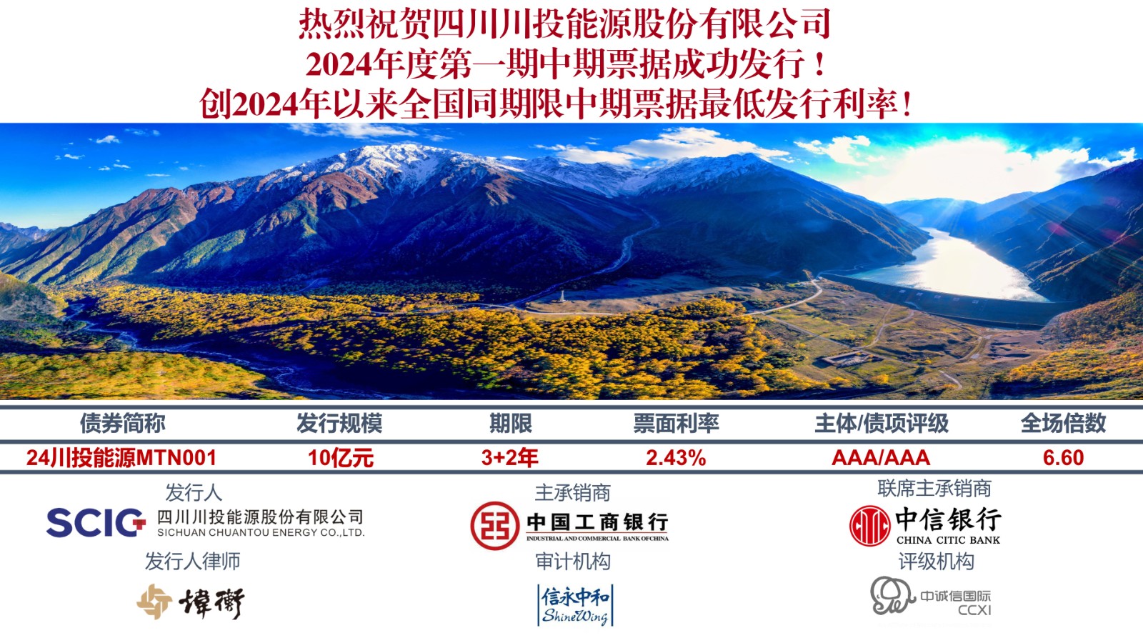川投能源成功發(fā)行10億元中期票據(jù)創(chuàng)2024年以來全國同期限中期票據(jù)最低發(fā)行利率
