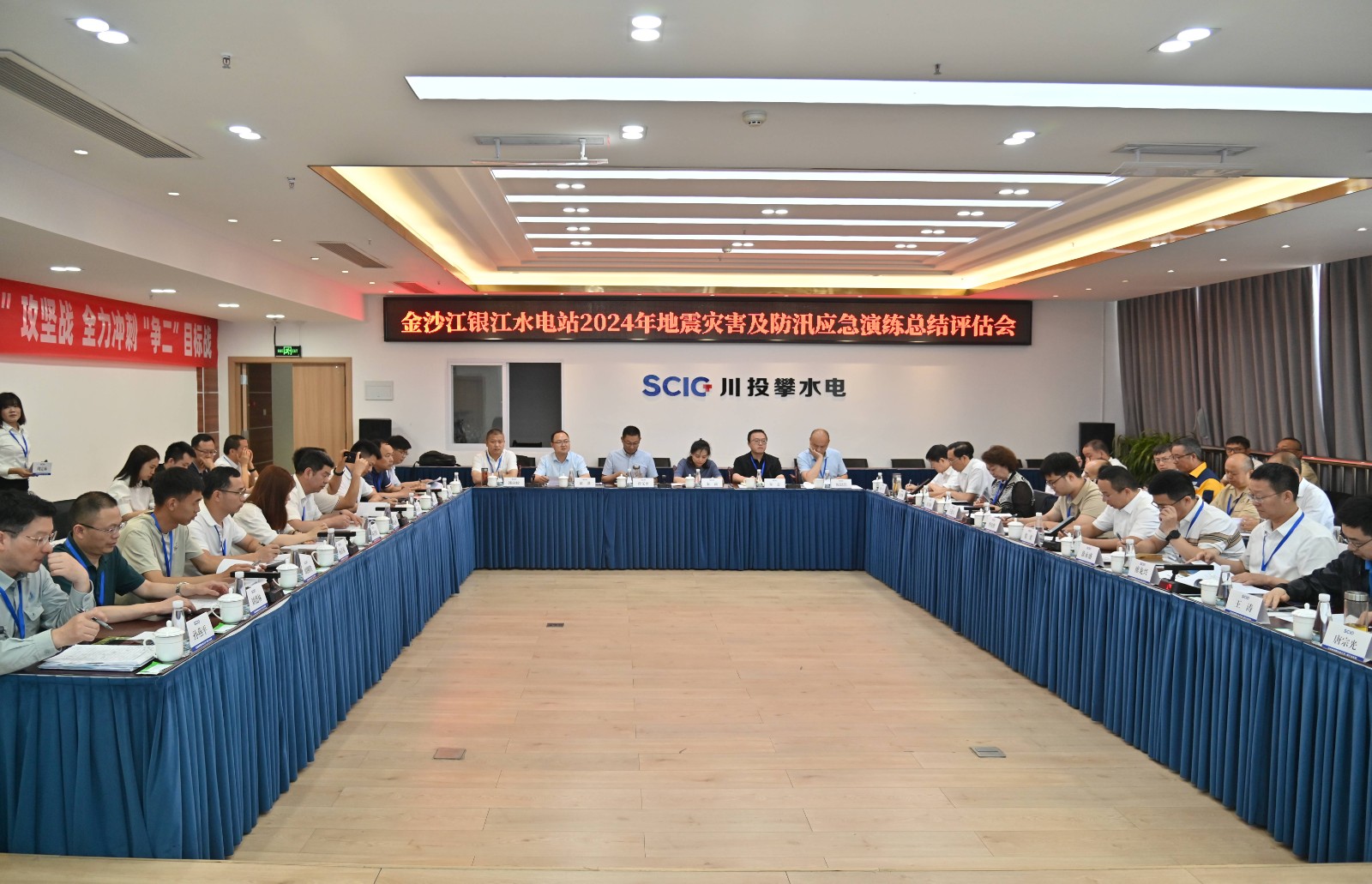 現(xiàn)場演練結(jié)束后,召開了應急演練總結(jié)評估會。會上,觀摩單位代表進行了點評指導,省發(fā)改委二級巡視員曾義平充分肯定了本次演練的效果,他指出,本次演練聚焦熟悉預案、磨合機制、鍛煉隊伍、提升能力四項重點任務,預案科學、流程清晰、措施有力、貼近實戰(zhàn),達到了預期目的,他要求攀水電公司能夠正確認識當前防震減災、防洪度汛和企業(yè)管理方面面臨的形勢,樹牢底線思維、極限思維,以此次演練為契機,認真復盤總結(jié)演練經(jīng)驗,做好突發(fā)事件防范應對工作,持續(xù)提升應急管理能力。