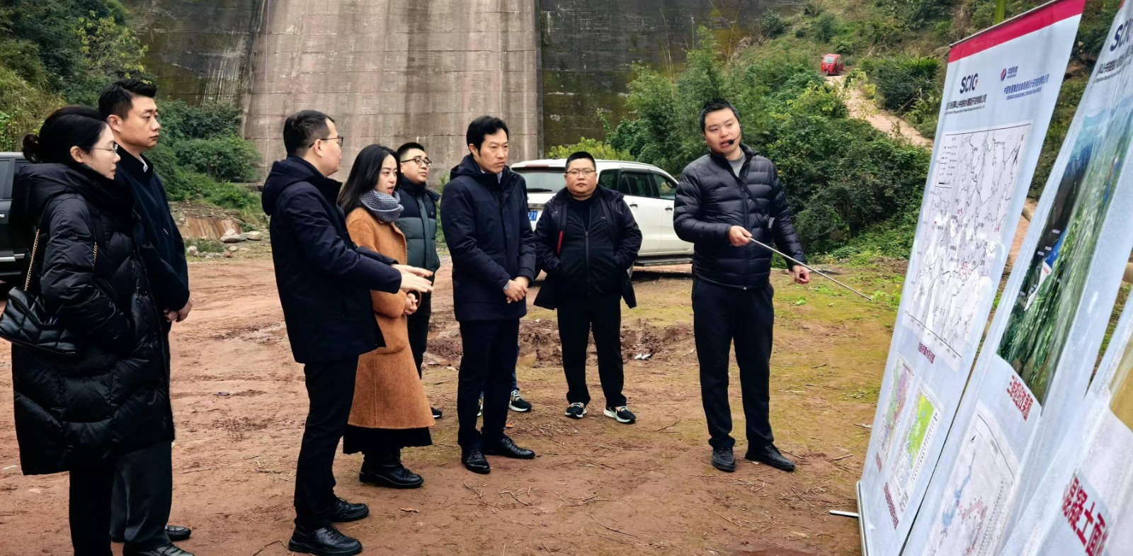 會(huì)前,戴月洪一行前往宜賓屏山書樓電站項(xiàng)目進(jìn)行現(xiàn)場調(diào)研,在下水庫壩址位置聽取了項(xiàng)目總體布置情況匯報(bào),在項(xiàng)目補(bǔ)水點(diǎn)和保寧村堆料場進(jìn)行了現(xiàn)場踏勘,詳細(xì)了解了項(xiàng)目現(xiàn)場工作開展情況。