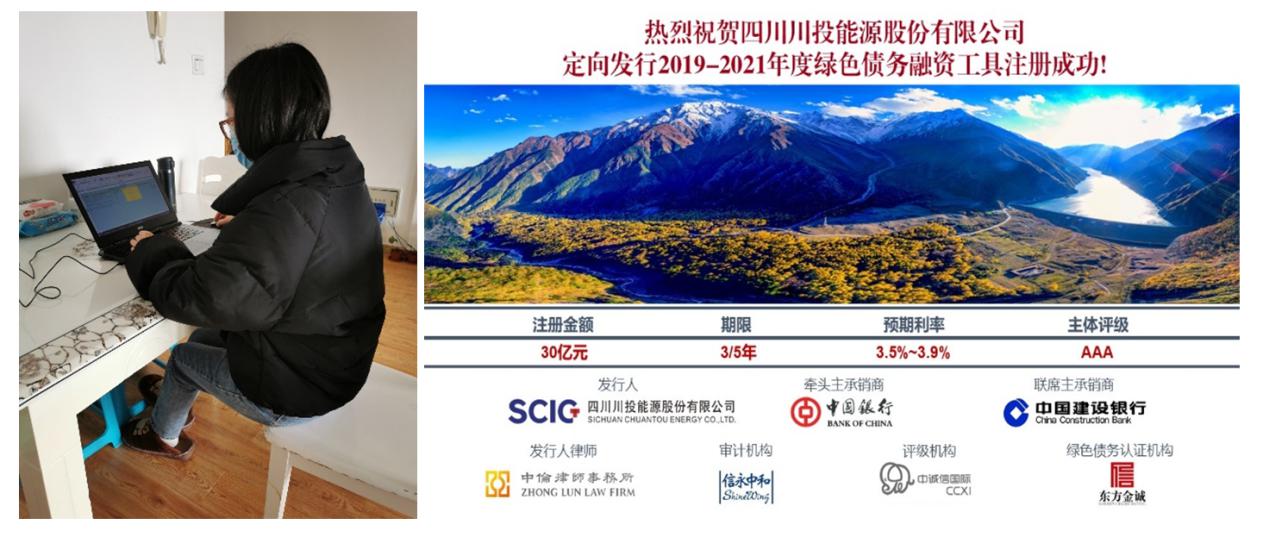 疫情期間,秦乙可需要每天不定時(shí)守在電腦前,沒有周內(nèi)周末之分,領(lǐng)導(dǎo)、同事、事務(wù)所、中介、銀行等等,什么時(shí)候需要資料、數(shù)據(jù),她便及時(shí)按要求提供。無論是私募債注冊(cè)資料提供,還是月度報(bào)表數(shù)據(jù)上報(bào)與財(cái)務(wù)分析,或者川投能源資金結(jié)算中心運(yùn)營的推進(jìn)、2019年度審計(jì)資料的提供,均通過遠(yuǎn)程辦公方式順利完成。