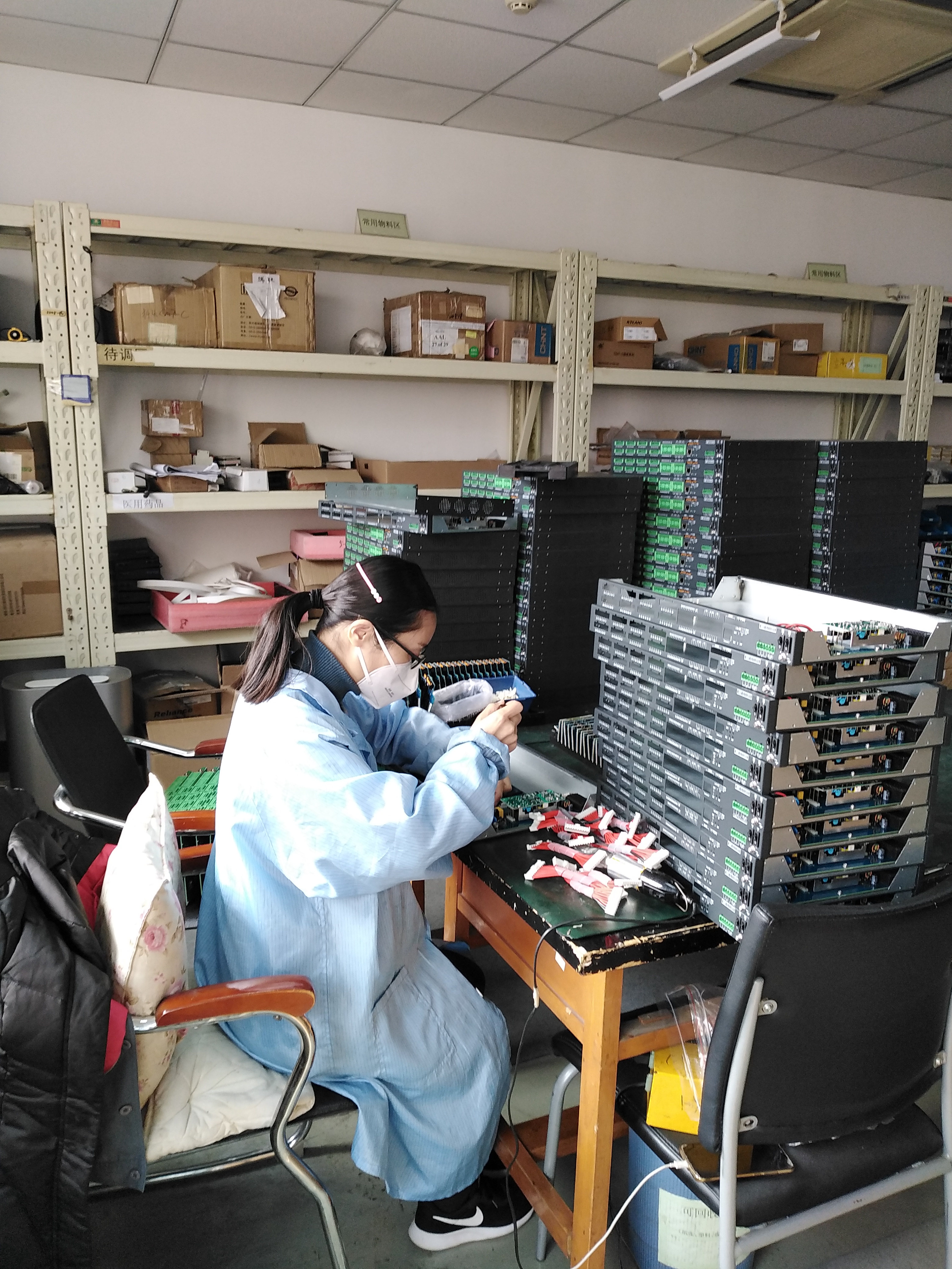 為保證各項(xiàng)目進(jìn)度需要,公司生產(chǎn)供應(yīng)部作為交大光芒復(fù)工復(fù)產(chǎn)產(chǎn)品物資戰(zhàn)線的主陣地,擔(dān)負(fù)著提供國(guó)鐵和城市軌道供電監(jiān)控系統(tǒng)核心產(chǎn)品的生產(chǎn)重任。以夏佐平為負(fù)責(zé)人的生產(chǎn)調(diào)試組,面對(duì)持續(xù)緊張的產(chǎn)品需求,大家沒有彷徨猶豫、沒有恐懼退縮,主動(dòng)要求第一批復(fù)工。團(tuán)隊(duì)成員一個(gè)個(gè)身穿厚重的防護(hù)服,規(guī)范戴好口罩,仔細(xì)完成消殺措施,心無(wú)旁騖地堅(jiān)守在工作崗位。疫情襲來(lái),平日里車水馬龍的工作園區(qū)現(xiàn)在顯得是空曠寂靜,熱鬧的辦公室也是人員寥寥無(wú)幾,面對(duì)1500套GM7-C裝置的生產(chǎn)任務(wù),夏佐平和生產(chǎn)供應(yīng)部的6位同仁們錨定一顆恒心,付諸百般努力,誓要按節(jié)點(diǎn)完成生產(chǎn)交付,為鐵路運(yùn)輸一線和疫情防控提供可靠的裝備,模板調(diào)試、程序灌裝、機(jī)電裝配、整機(jī)測(cè)試、高溫老化……,一道道精密工序在團(tuán)隊(duì)成員們的手里執(zhí)行歸位,團(tuán)隊(duì)協(xié)作秩序井然,確保雅萬(wàn)、合安九等重點(diǎn)項(xiàng)目產(chǎn)品的順利按約交付。生產(chǎn)線上的每一根接線,每一次焊接,每一顆螺絲緊固,每一次調(diào)式數(shù)據(jù)測(cè)試,是他們對(duì)于疫情防控阻擊戰(zhàn)和企業(yè)生產(chǎn)經(jīng)營(yíng)保衛(wèi)戰(zhàn)最質(zhì)樸的詮釋。