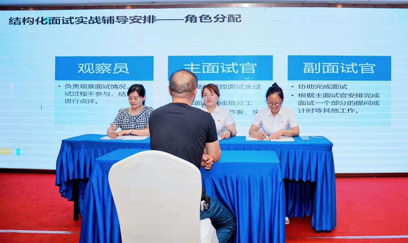 帶著楊超龍?zhí)岢龅娜肆Y源“為什么學(xué)”“學(xué)什么”“怎么學(xué)”三個(gè)方面的啟發(fā)以及對(duì)人力資源從業(yè)人員的紀(jì)律性、專業(yè)性、成長性提出的嚴(yán)格要求,在前程無憂資深導(dǎo)師團(tuán)隊(duì)現(xiàn)場(chǎng)授課過程中,人力資源的小伙伴們通過"PFA場(chǎng)景化學(xué)習(xí)",學(xué)會(huì)躬身入局,換位思考,在角色扮演中各自發(fā)揮自身優(yōu)勢(shì)特長,共同達(dá)成團(tuán)隊(duì)目標(biāo);通過"角色認(rèn)知"工作坊,學(xué)會(huì)如何從潛力、性格去剖析團(tuán)隊(duì)角色,整合團(tuán)隊(duì)優(yōu)勢(shì),實(shí)現(xiàn)共贏;通過“識(shí)人用人技巧”專題課,解析評(píng)價(jià)中心技術(shù),識(shí)別人才,甄選人才,全方位掌握面試技巧;通過“金牌面試官”現(xiàn)場(chǎng)實(shí)操,全體學(xué)員運(yùn)用所學(xué)知識(shí)進(jìn)行面試實(shí)戰(zhàn)模擬,復(fù)盤面試常見問題,剖析識(shí)人用人誤區(qū)。