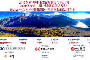 川投能源成功發(fā)行10億元中期票據(jù)創(chuàng)2024年以來全國同期限中期票據(jù)最低發(fā)行利率