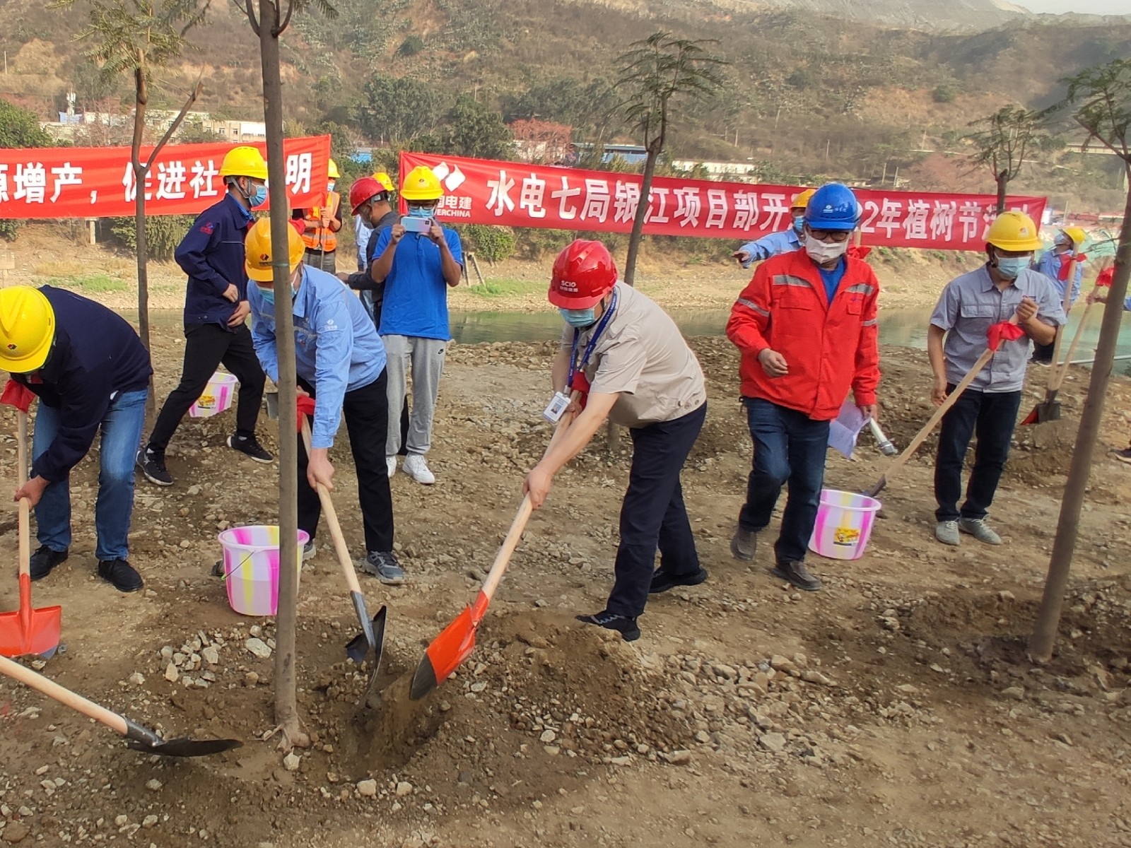 陽春三月,萬物復(fù)蘇。3月12日,適逢一年一度植樹節(jié),銀江水電站各參建單位在金沙江邊、工程施工現(xiàn)場空曠區(qū)域聯(lián)合開展了“3.12”植樹節(jié)活動?;顒佑膳仕姽緺款^,華東院環(huán)水保監(jiān)理組織,水電五局、水電七局聯(lián)合承辦,各參建單位共同參與。攀水電公司黨總支委員、總經(jīng)理吳巍嶼,黨總支委員、董事會秘書、工會主席鄧勇與各參建單位項(xiàng)目主要負(fù)責(zé)人、員工代表共同種下了一顆顆象征團(tuán)結(jié)友誼和綠色環(huán)保的同心樹。
