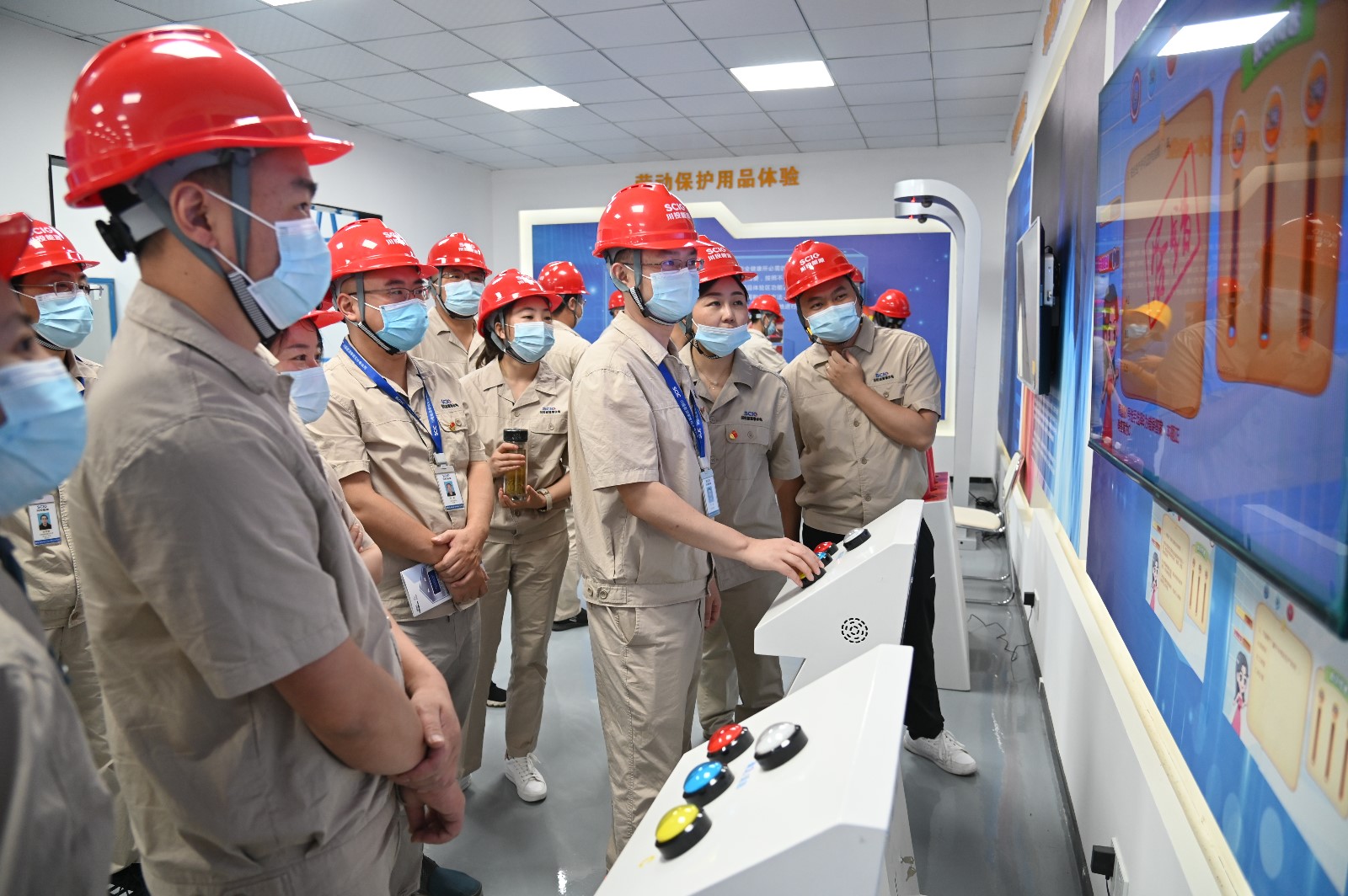 隨后,全體人員在公司安全體驗(yàn)館進(jìn)行了沉浸教學(xué),該體驗(yàn)館面積約700平方米,設(shè)有安全帶、有限空間、機(jī)械傷害、平衡木、護(hù)欄推倒、安全帽撞擊、高處墜落、觸電、滅火器使用、醫(yī)療急救、安全事故VR體驗(yàn)等體驗(yàn)項目,包含勞動防護(hù)用品穿戴及使用、安全標(biāo)識及工程機(jī)械認(rèn)知、風(fēng)險辨識、安全知識和應(yīng)急處置等教育培訓(xùn)內(nèi)容。本次安全體驗(yàn)教育培訓(xùn)通過展板展示、實(shí)景模擬、案例警示、知識答題、親身體驗(yàn)等方式,將施工現(xiàn)場常見的危險源、危險行為與事故類型具體化、實(shí)物化,充分展示工程建設(shè)需要學(xué)習(xí)掌握的安全知識和技能。