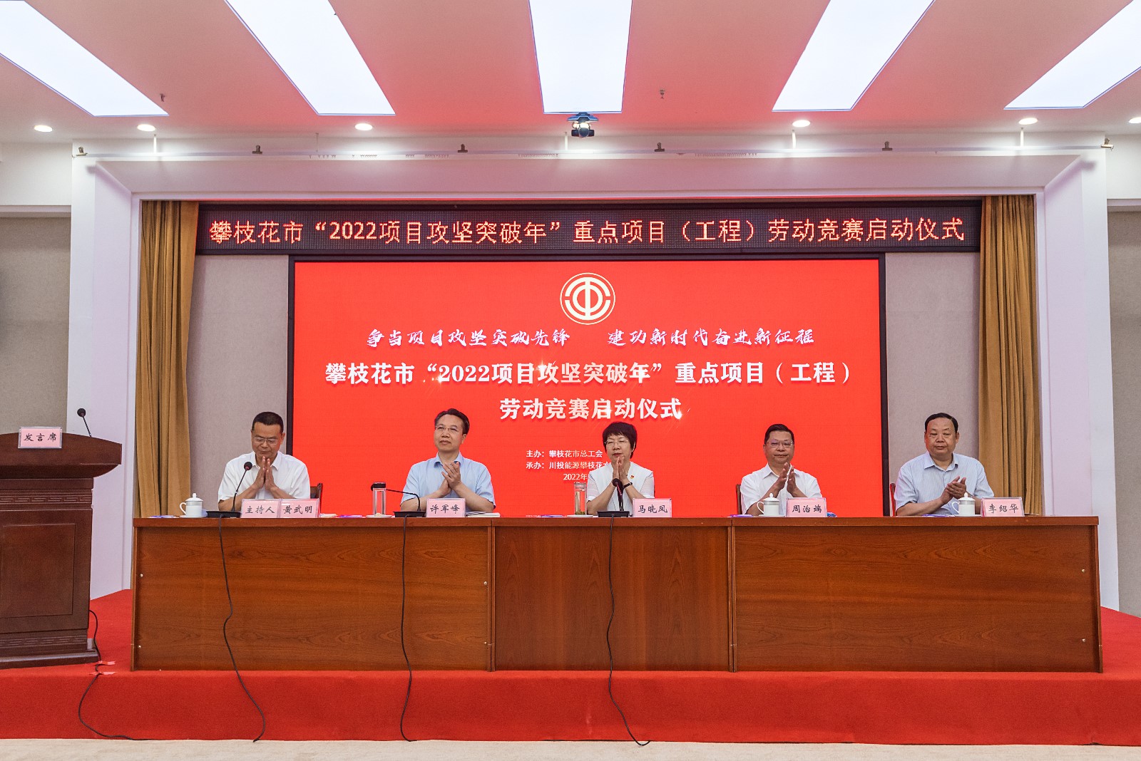 5月11日,由攀枝花市總工會主辦、攀水電公司承辦的攀枝花市“2022項目攻堅突破年”重點項目(工程)勞動競賽啟動儀式在攀枝花市會展中心舉行,攀枝花市委常委、統(tǒng)戰(zhàn)部部長、市總工會主席馬曉鳳出席啟動儀式并宣布勞動競賽正式啟動。市人大常委會副主任周治端、副市長許軍峰、市政協(xié)副主席李紹華出席啟動儀式,川投能源副總經(jīng)理、攀水電公司黨總支書記、董事長徐孝剛代表全市50家重點項目(工程)發(fā)出倡議。
