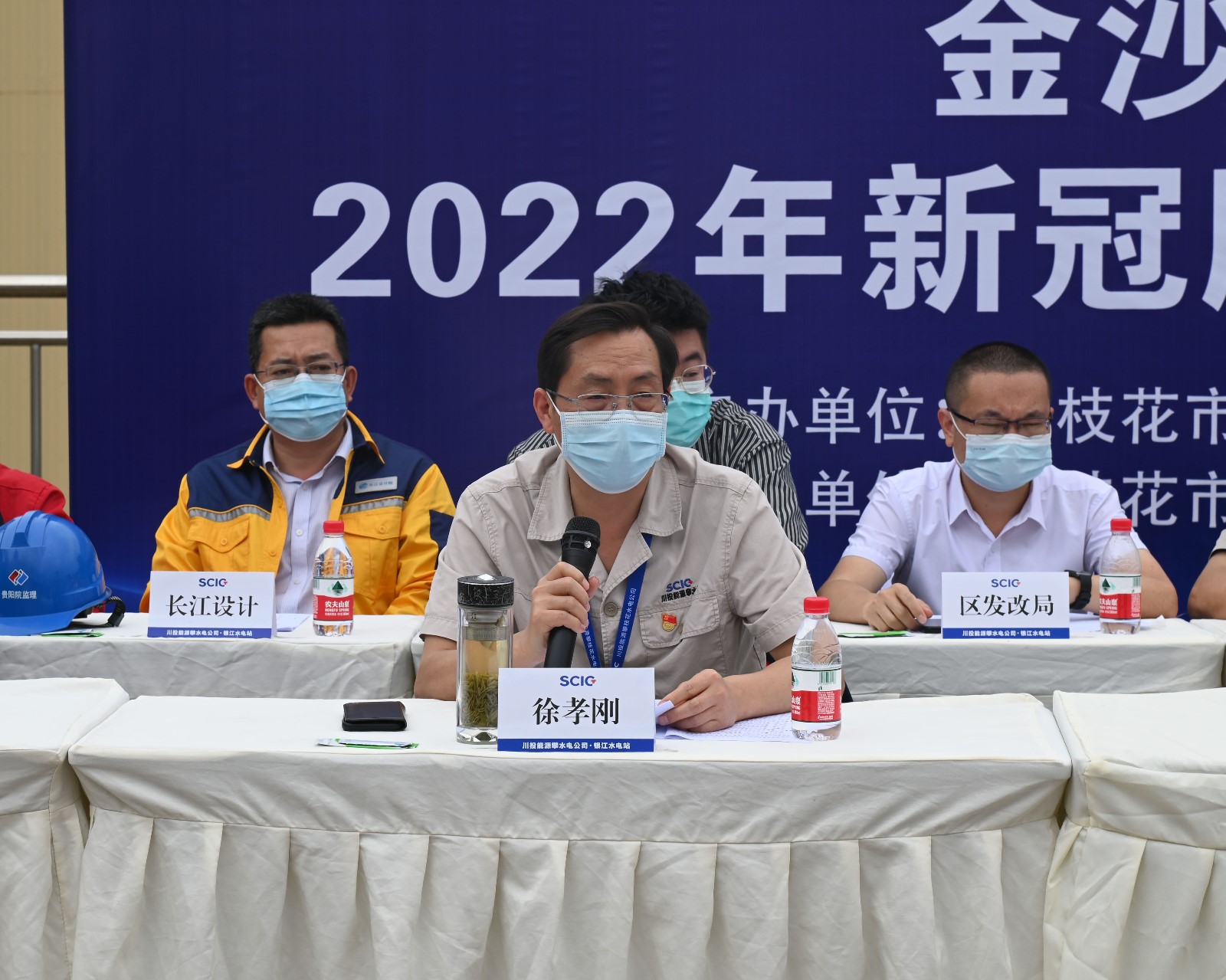 為進一步做好公司新冠疫情防控工作,強化和提高公司與各參建單位的應(yīng)急處置意識和能力,5月21日上午,攀水電公司與東區(qū)疾控中心在銀江水電站35kV施工變電站聯(lián)合組織開展新冠疫情防控應(yīng)急演練。演練由攀水電公司黨總支委員、總經(jīng)理、疫情防控領(lǐng)導(dǎo)小組副組長吳巍嶼主持,川投能源副總經(jīng)理、攀水電公司黨總支書記、董事長、疫情防控領(lǐng)導(dǎo)小組組長徐孝剛擔(dān)任演練總指揮,攀枝花市東區(qū)政府副區(qū)長王靜,東區(qū)人大黨組副書記、副主任陳康,東區(qū)有關(guān)部門負責(zé)人和公司疫情防控領(lǐng)導(dǎo)小組主要成員及各參建單位負責(zé)人到現(xiàn)場觀摩演練。