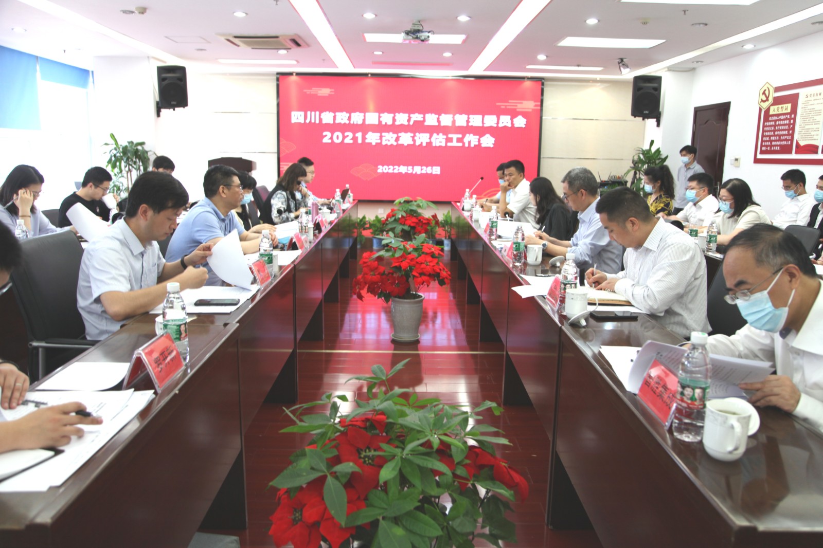 2022年5月26日上午,省國資委改革處處長肖代勇率評估組在交大光芒生產(chǎn)基地多功能會議室召開2021年川投集團改革評估工作會。此次評估由省國資委會同中智咨詢公司組成評估組,旨在深入了解省屬企業(yè)及下屬天府綜改企業(yè)各項任務(wù)進(jìn)展情況、對各省屬企業(yè)2021年度國企改革三年行動落實情況進(jìn)行客觀評估。國資委改革處副處長梅潔、企業(yè)領(lǐng)導(dǎo)人員管理處副處長王瑾、黨建工作處劉濤等出席評估會。川投集團總經(jīng)理助理、戰(zhàn)略投資部部長田傳平率集團公司相關(guān)部門負(fù)責(zé)人參會,川投集團所屬“天府綜改”企業(yè)智勝集成和交大光芒一并參加接受評估,“雙百行動”企業(yè)華西牙科、“科改示范”企業(yè)宏明電子相關(guān)領(lǐng)導(dǎo)以及川投能源黨委委員、總會計師劉好、董事會秘書魯晉川列席評估會。