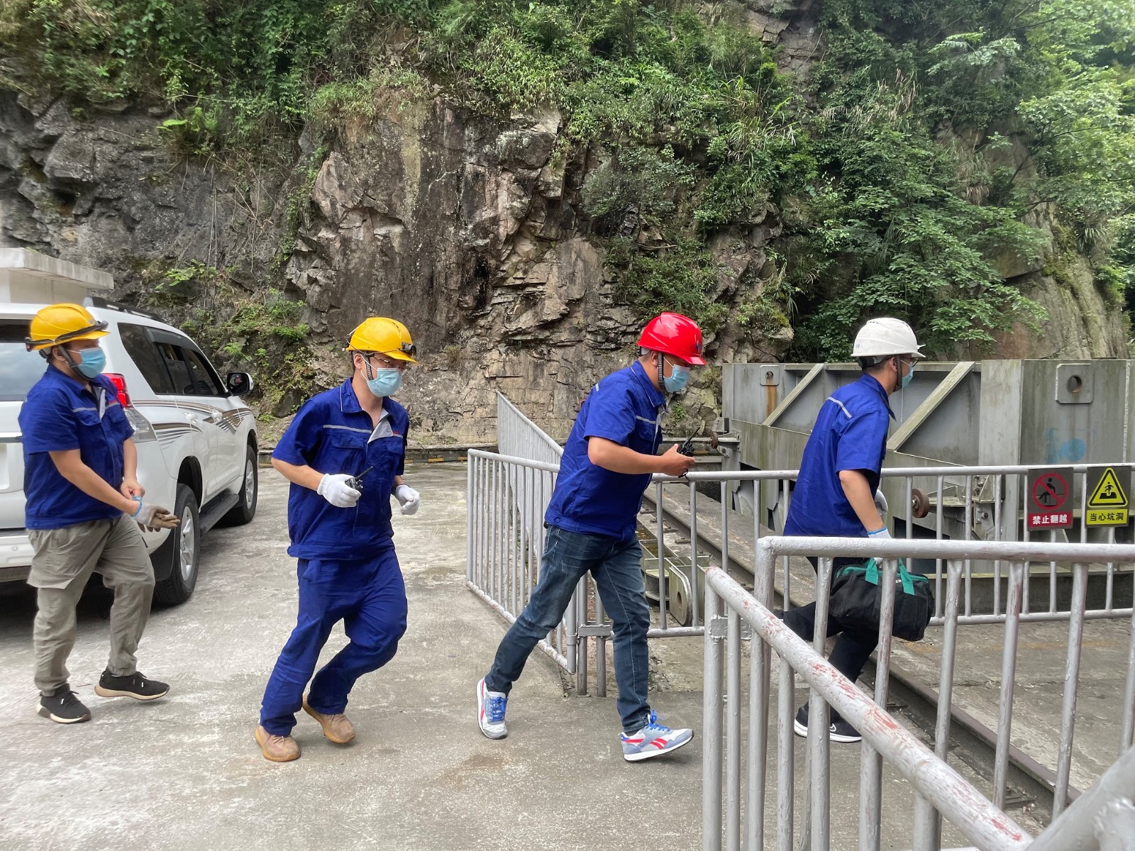 隨著演練總指揮喇叭河鎮(zhèn)副鎮(zhèn)長徐志鵬一聲令下,演練正式開始。地震警示鈴聲響起,大壩值班員迅速撤離到避險區(qū)域,待主震過后,立即開展設(shè)備設(shè)施巡視檢查,并同步開展信息上報、水庫水位控制一系列工作。演練以模擬電廠“300kW柴油發(fā)電機(jī)不能啟動”為背景,大壩參演人員匯報中控室,隨后應(yīng)急搶修組立即趕赴現(xiàn)場,對出現(xiàn)的故障進(jìn)行逐一排查和縝密分析,在規(guī)定的時間內(nèi)完成了設(shè)備的搶險任務(wù)。最后,演練指揮組發(fā)出指令“腳基坪電廠大壩右岸邊坡土質(zhì)地層有飛石,竹林內(nèi)揚(yáng)起沙塵,存在塌方風(fēng)險,人員立即撤離”,險情就是命令,參演人員有序、安全開始撤離,隨著最后一根警戒線布置完成,本次演練圓滿結(jié)束。