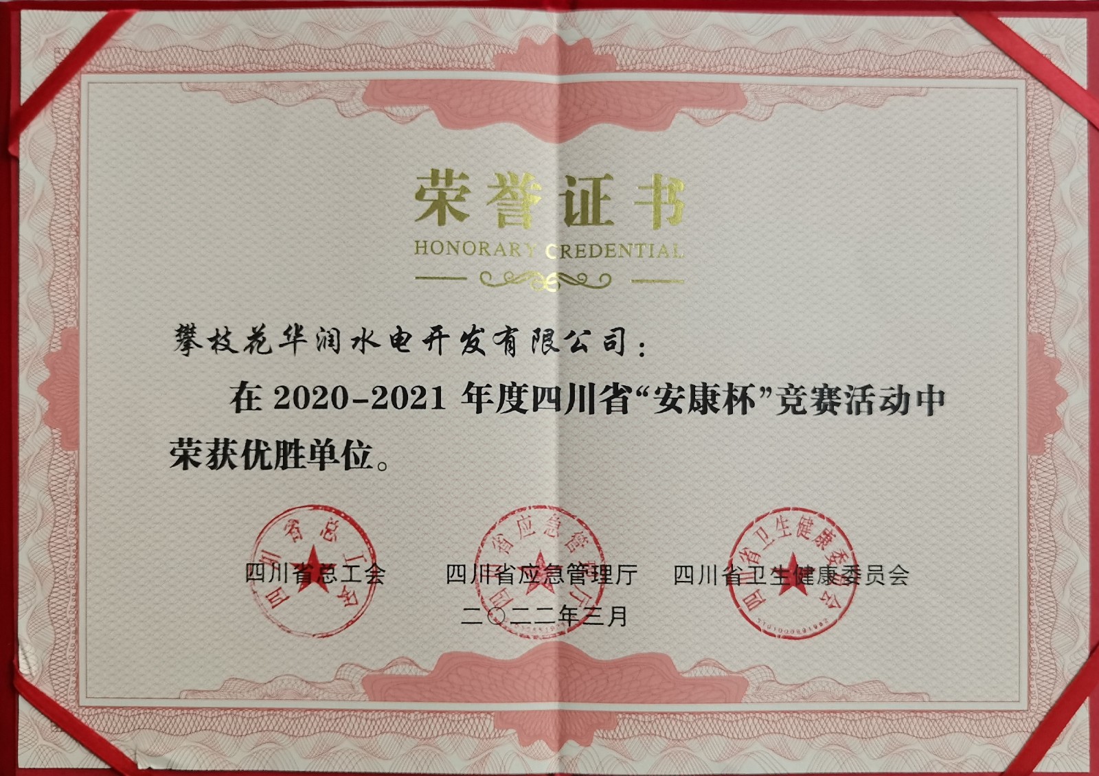 近日,攀水電公司榮獲了四川省總工會(huì)、四川省應(yīng)急管理廳、四川省衛(wèi)健委聯(lián)合頒發(fā)的四川省“安康杯”競賽活動(dòng)優(yōu)勝單位光榮稱號。在川投集團(tuán)、川投能源正確領(lǐng)導(dǎo)下,攀水電公司深入貫徹習(xí)近平總書記關(guān)于安全生產(chǎn)的重要論述,全面落實(shí)中央、省、市安全生產(chǎn)工作部署,積極組織公司及參建單位開展“安康杯”競賽活動(dòng)。經(jīng)過東區(qū)、攀枝花市、四川省的層層申報(bào)、評選,公司在2020-2021年度四川省“安康杯”競賽活動(dòng)中榮獲優(yōu)勝單位,這不僅是攀水電公司獲得的首個(gè)省級榮譽(yù),也是全體銀江建設(shè)者的共同榮譽(yù)。