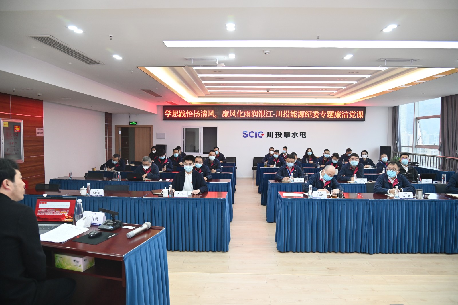 雖然銀江水電站建設(shè)正值進(jìn)入大壩和廠房混凝土澆筑的重要時期,但公司在攀領(lǐng)導(dǎo)班子成員及各層級干部群眾聽講熱情高漲,公司干部員工共28人現(xiàn)場聆聽學(xué)習(xí)了廉潔黨課。大家紛紛表示,通過學(xué)習(xí),既警醒了人心,又鼓舞了斗志,在川投能源的持續(xù)關(guān)懷指導(dǎo)下,公司將嚴(yán)格按照川投能源黨委關(guān)于全面從嚴(yán)治黨的工作部署要求,以更高的政治覺悟、更踏實(shí)的工作作風(fēng)、更飽滿的工作熱情把銀江水電站建成優(yōu)質(zhì)工程、樣板工程、陽光工程。
