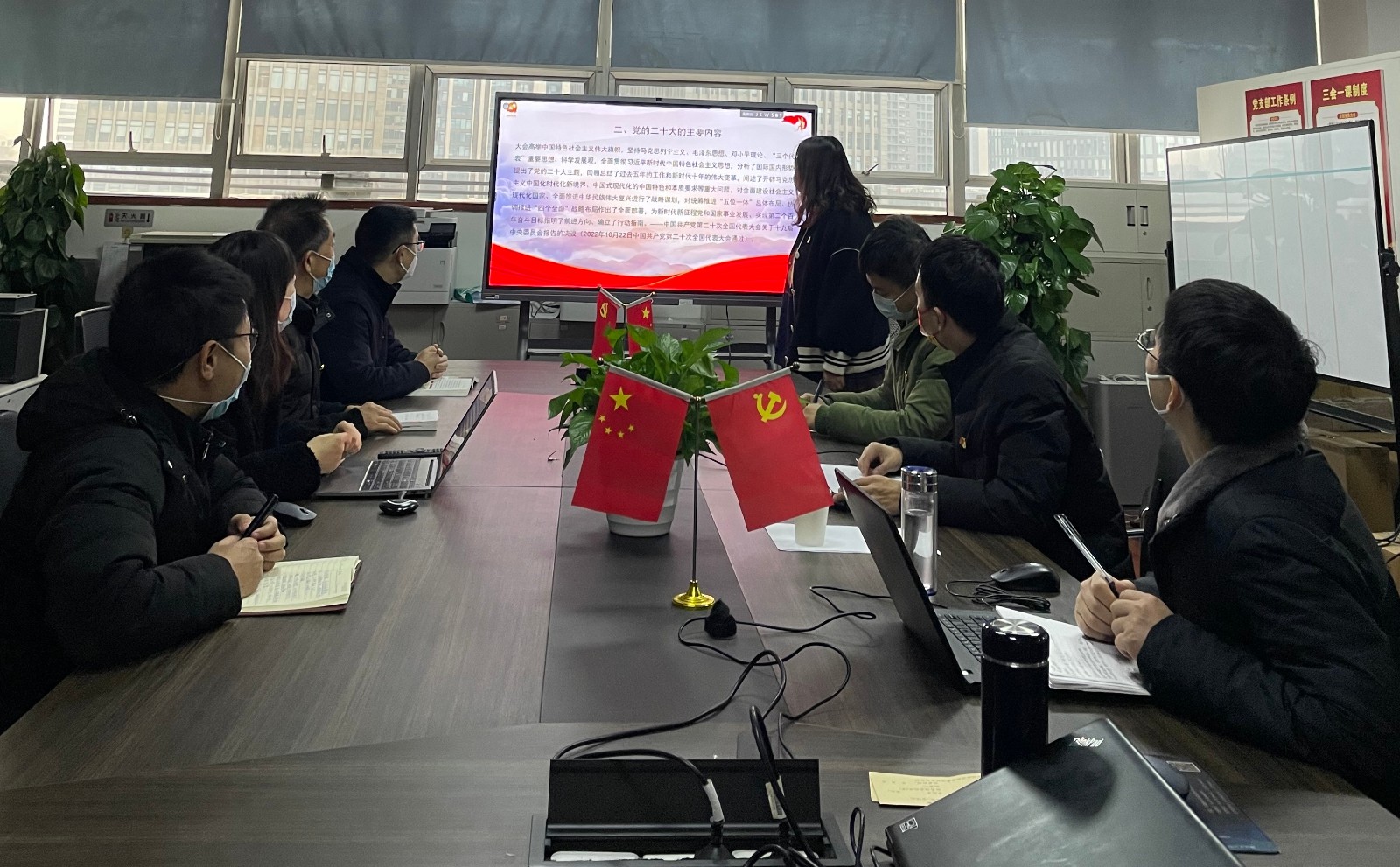 宣講會上,第三黨支部書記朱婷從黨的二十大召開的時代背景、黨的二十大內容、黨的二十大重要意義、如何貫徹落實好黨的二十大精神等四個方面開展了全面系統(tǒng)宣講。她指出,黨的二十大是在我國邁上全面建設社會主義現(xiàn)代化國家新征程、向第二個百年奮斗目標進軍的關鍵時刻召開的一次十分重要的大會。她強調,支部全體黨員要深入學習領會黨的二十大精神,吃透原文思想,領會精神實質,堅持學深悟透,把學習宣傳貫徹黨的二十大精神與做好本職工作緊密結合起來,把學習宣傳貫徹黨的二十大精神統(tǒng)一到真抓實干、創(chuàng)新爭先上,立足崗位多干實事,擔當作為勇當先鋒,團結帶領全體員工高質量完成各項目標任務。