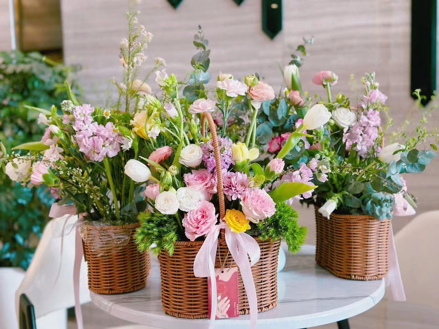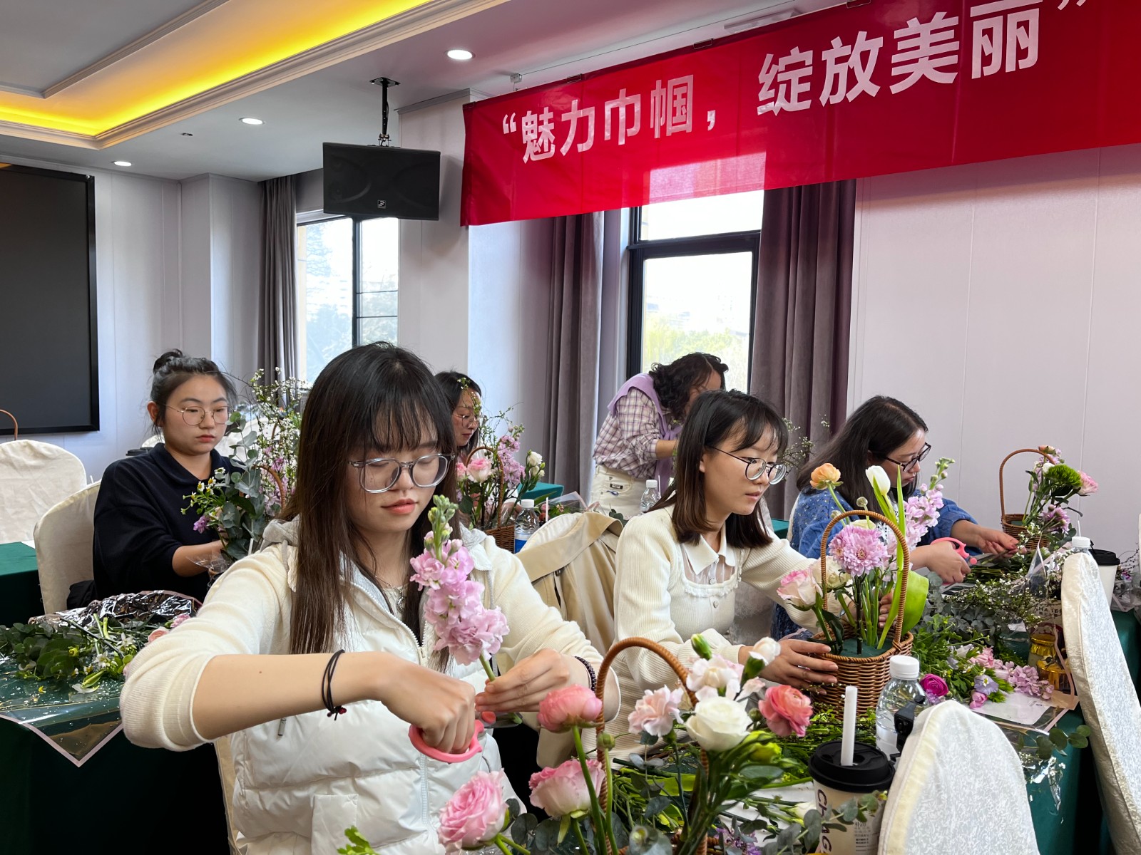 緊接著組織了DIY插花活動,邀請專業(yè)花藝師現(xiàn)場講解鮮花常識、色彩搭配、保鮮方法、花枝修剪和插花的基本技巧。在花藝師指導(dǎo)下,大家躍躍欲試,邊學(xué)邊交流,紛紛行動起來,開啟鮮花“綻放”之旅,現(xiàn)場春意盎然、熱鬧非凡,一雙雙巧手將各色花卉配以枝葉點綴,讓一把把散落的花材變成了美麗靈動又具有個性特色的花藝作品,大家喜笑顏開,擁抱著自己精心制作的花籃合影留念。