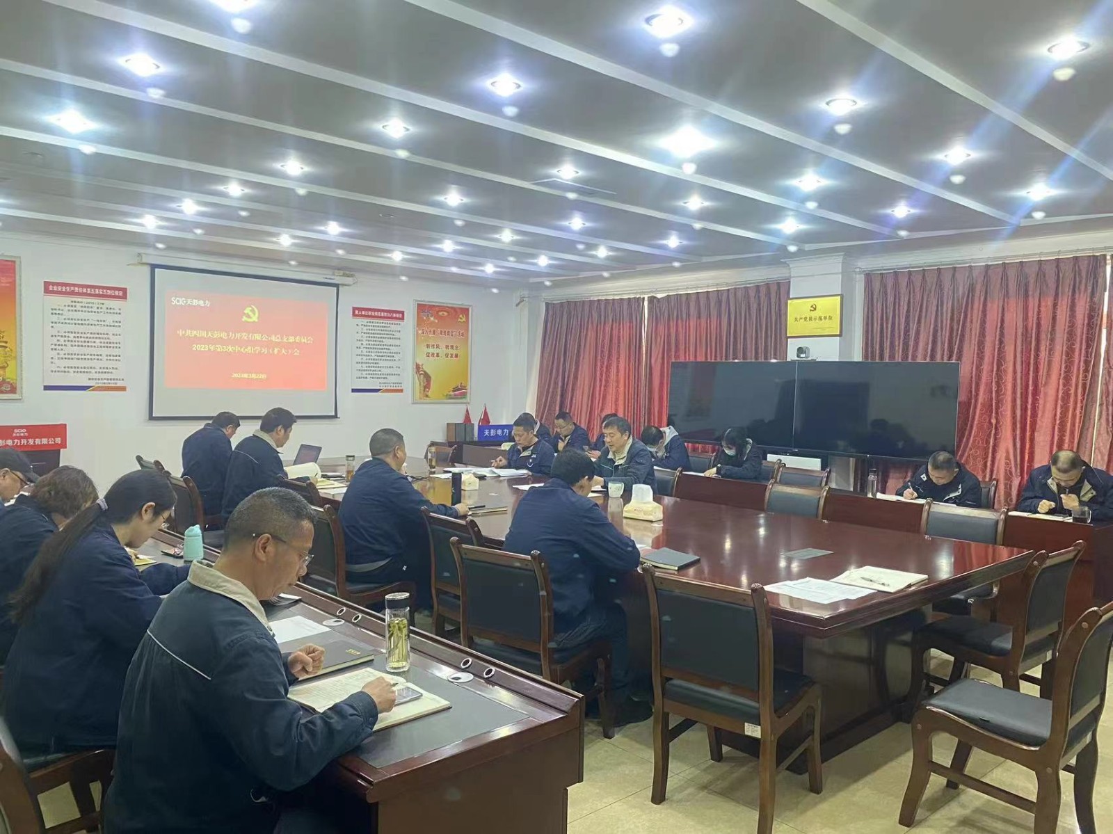 3月22日上午,川投電力黨委所屬天彭電力黨總支召開2023年第3次黨總支理論中心組學(xué)習(xí)會,專題學(xué)習(xí)研討全國兩會精神。公司領(lǐng)導(dǎo)、黨員干部、關(guān)鍵崗位人員參加會議,會議由公司黨總支書記、總經(jīng)理劉紅兵主持。