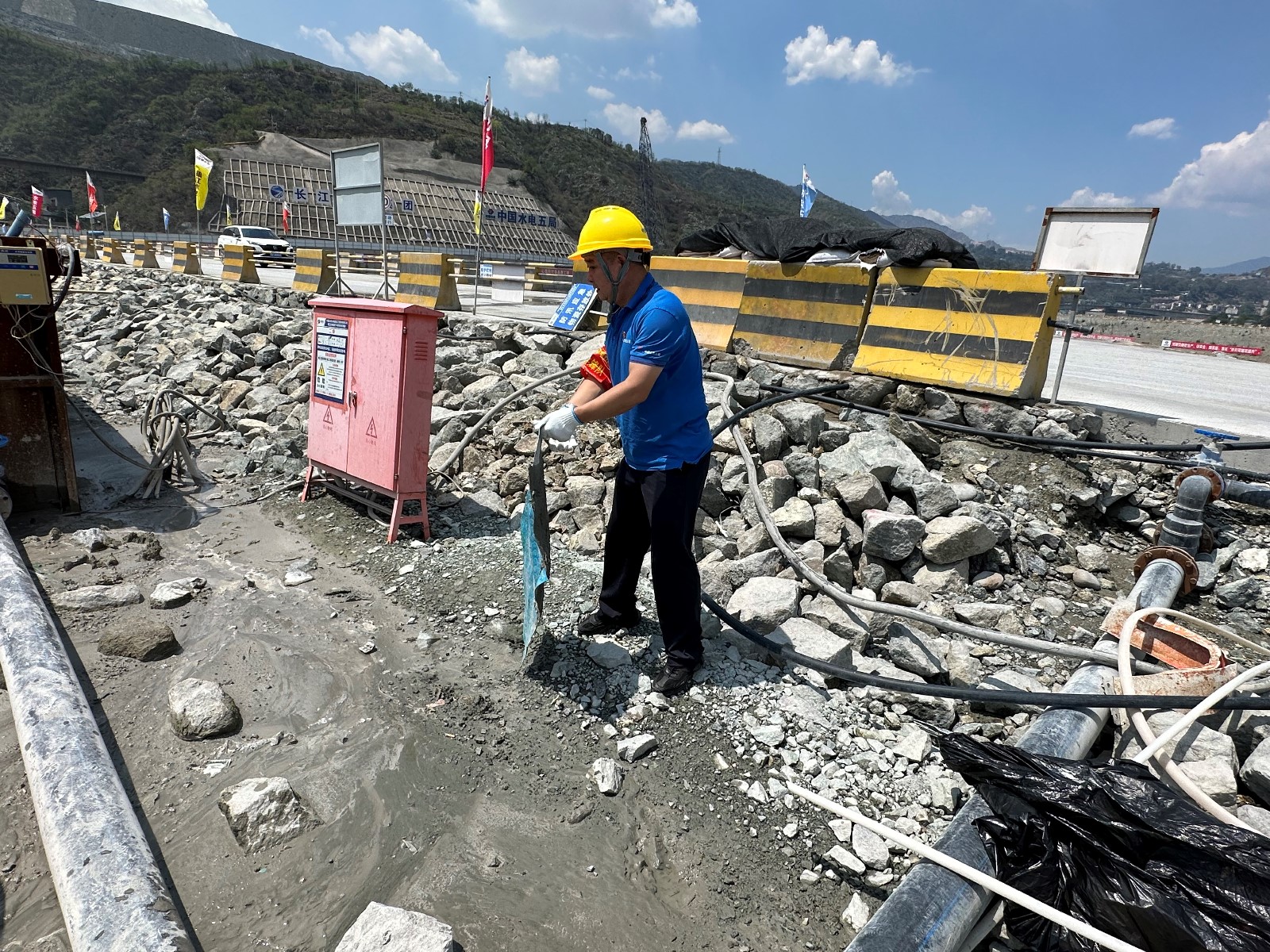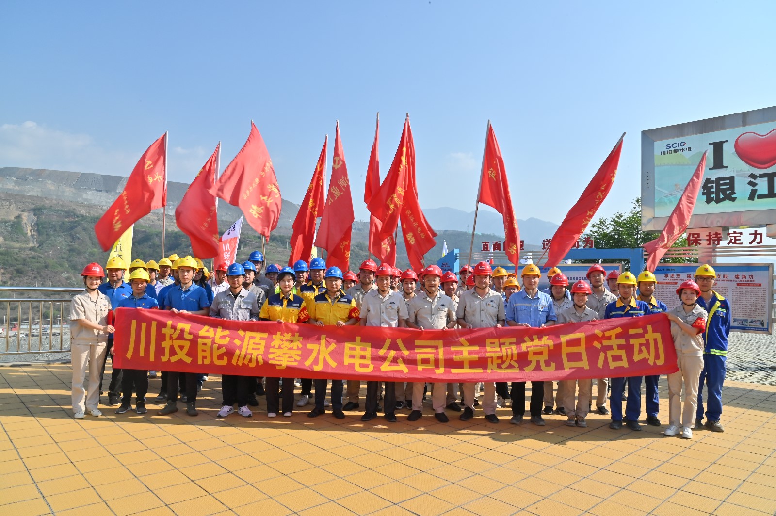 工地現(xiàn)場(chǎng),在烈日的“考驗(yàn)”下,川投能源副總經(jīng)理,攀水電公司黨總支書(shū)記、董事長(zhǎng)徐孝剛作動(dòng)員講話。他講到,黨的二十大明確提出:要在全社會(huì)弘揚(yáng)勞動(dòng)精神、奮斗精神、奉獻(xiàn)精神,培育時(shí)代新風(fēng)新貌。在黨102歲生日之際,今天我們團(tuán)結(jié)在一起,開(kāi)展主題黨日活動(dòng),傳承黨自力更生、艱苦創(chuàng)業(yè)的紅色基因,弘揚(yáng)團(tuán)結(jié)協(xié)作、無(wú)私奉獻(xiàn)的政治品格,建設(shè)綠色環(huán)保銀江,共建和諧文明工地;希望大家發(fā)揚(yáng)不怕累、不怕臟、不怕苦的勞動(dòng)精神,用勤勞的雙手,打造美麗銀江,展現(xiàn)“顏值擔(dān)當(dāng)”。