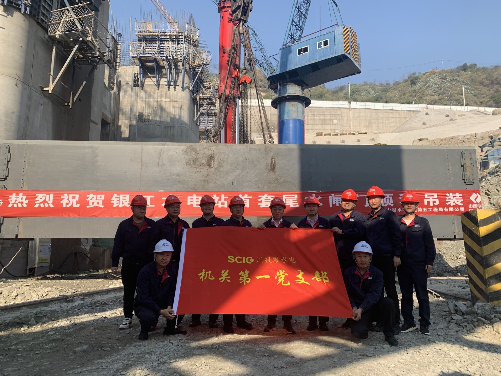 目前正值銀江水電站沖刺年度目標任務的關鍵時刻,在銀江水電站首個金結安裝重要節(jié)點尾水首套閘門吊裝之際,11月29日上午,攀水電公司機關第一黨支部組織在施工現(xiàn)場開展了11月份主題黨日活動。機關第一黨支部領導干部、黨員共計10余人參加了本次活動。