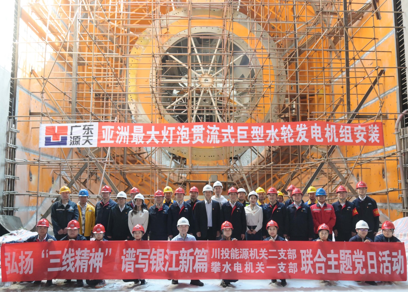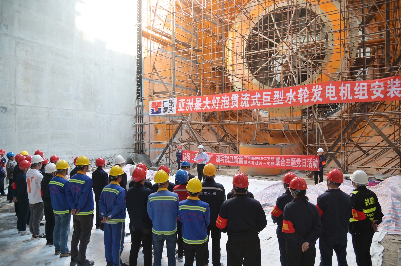 在銀江水電站亞洲最大燈泡貫流式巨型水輪發(fā)電機(jī)組安裝現(xiàn)場(chǎng),川投能源機(jī)關(guān)二支部書記李睿講授了工地微黨課《承諾》,與大家一起重溫銀江水電站建設(shè)過程中的感人故事?;顒?dòng)中,徐孝剛用通俗易懂的語言,為現(xiàn)場(chǎng)同志介紹了銀江水電站的建設(shè)特點(diǎn)、施工情況和下一步工程建設(shè)計(jì)劃,并號(hào)召全體黨員和團(tuán)員青年要圍繞“保一爭(zhēng)二”提前發(fā)電重要目標(biāo),團(tuán)結(jié)一心、勇挑重?fù)?dān)、善作善成。