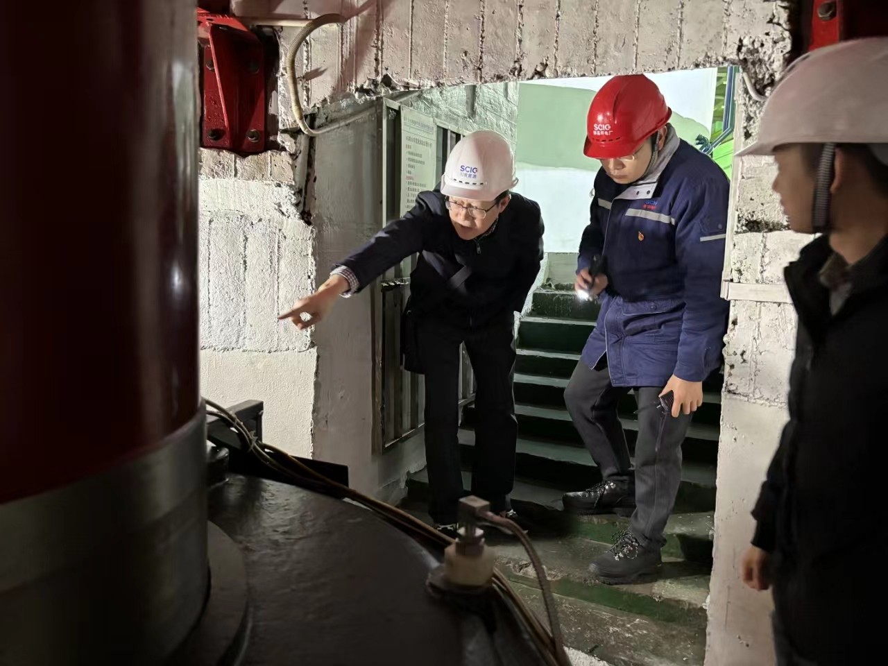 楊平一行實地察看電廠主廠房、發(fā)電機主設(shè)備、蝶閥、應(yīng)急物資儲備等情況,翻閱抽查風(fēng)險隱患管理及水淹廠房應(yīng)急管理等資料,指出存在問題,提出工作要求。