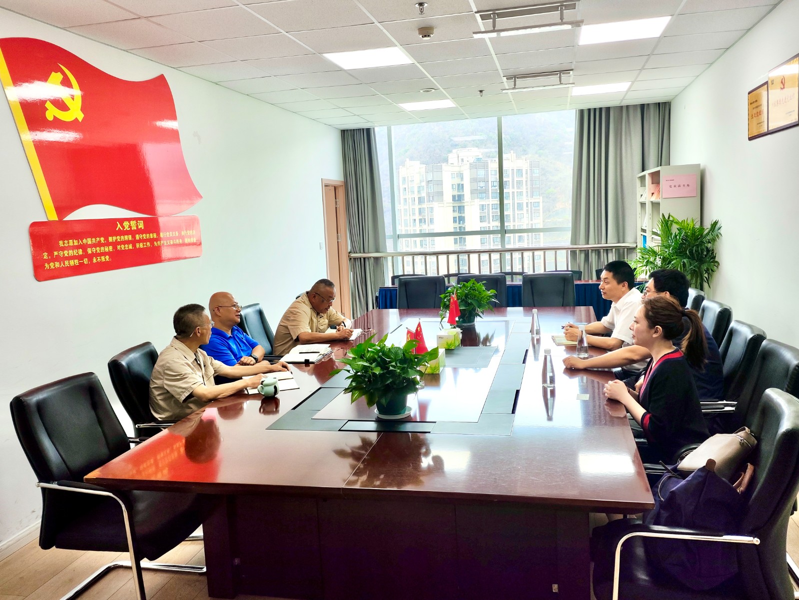 首先在攀水電公司辦公地召開了見面會(huì)。會(huì)上,王俊森介紹了銀江水電站的工程建設(shè)特點(diǎn)、現(xiàn)階段施工重點(diǎn)和安全生產(chǎn)組織機(jī)構(gòu)及人員配置情況等;尤其強(qiáng)調(diào)工程質(zhì)量及安全是今年“保一爭二”目標(biāo)實(shí)現(xiàn)的基礎(chǔ)。公司不斷采取措施提高全員安全責(zé)任意識(shí),強(qiáng)化質(zhì)量管控,確保質(zhì)量安全可控在控,堅(jiān)決杜絕安全事故發(fā)生,為全面實(shí)現(xiàn)今年發(fā)電目標(biāo)落地筑牢防線。黃超對(duì)攀水電公司長期以來對(duì)平安產(chǎn)險(xiǎn)四川分公司的支持和信任致以感謝。他表示,平安產(chǎn)險(xiǎn)四川分公司為提高投保企業(yè)抗風(fēng)險(xiǎn)能力,協(xié)助開展風(fēng)險(xiǎn)減量和管控工作,因此在汛期到來之際,組織此次重大客戶工程項(xiàng)目的專項(xiàng)風(fēng)險(xiǎn)巡訪。