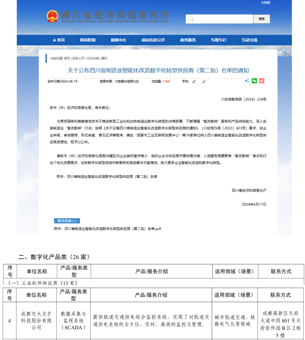2024年6月19日,四川省經(jīng)濟(jì)和信息化廳網(wǎng)站公布四川省制造業(yè)智能化改造數(shù)字化轉(zhuǎn)型供應(yīng)商(第二批)名單,交大光芒作為數(shù)字化產(chǎn)品類工業(yè)軟件供應(yīng)商入選四川省制造業(yè)智能化改造數(shù)字化轉(zhuǎn)型供應(yīng)商資源池。