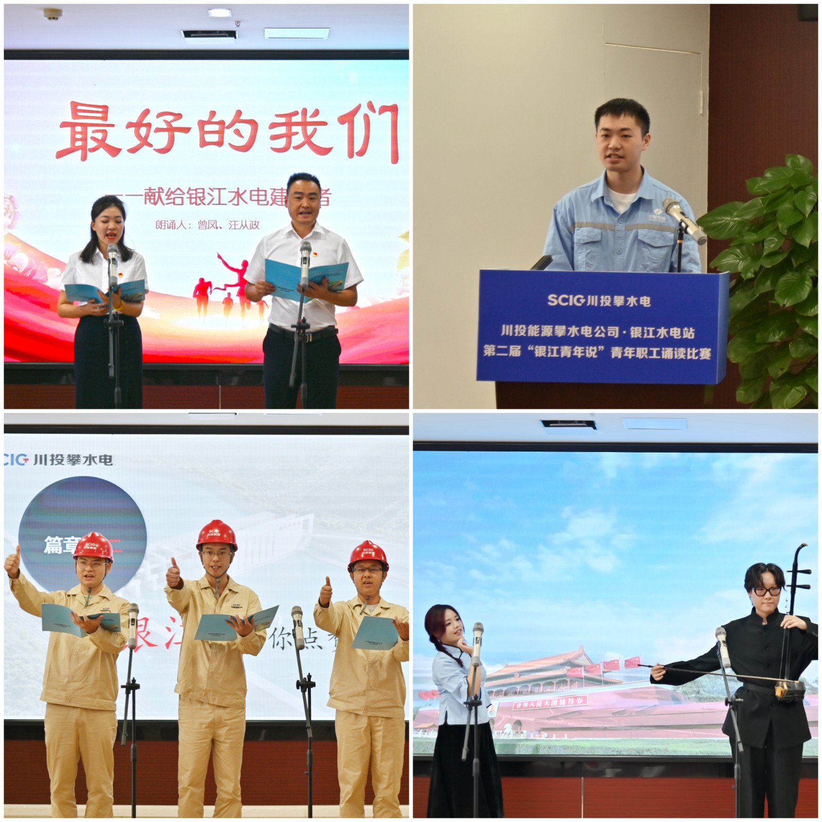 本次比賽以“蓄水發(fā)電加油干,銀江青年顯擔(dān)當”為主題,來自公司及參建單位的10組14名選手結(jié)合各自的工作崗位精心創(chuàng)作了誦讀作品,他們中有剛退伍的發(fā)電部新兵,有剛畢業(yè)的財務(wù)新手,還有久經(jīng)沙場的一線職工,不同崗位、各色服飾、創(chuàng)意滿滿、精彩紛呈。來自水電五局項目部的黃山珊、扈文博身穿中國風(fēng)服裝,手拿傳統(tǒng)樂器二胡,以優(yōu)美的舞姿和深情的誦讀,回顧了歷史長河的中熱血青年,贊美了日夜奮戰(zhàn)在施工一線的銀江青年,充分展現(xiàn)了當代青年的文化自信,勇奪比賽第一名;平日里不善言辭、埋頭苦干的工程小伙也勇敢站上講臺,致敬了他們心中“年輕的戰(zhàn)場”,以一段充滿激情的歌聲瞬間把現(xiàn)場氣氛點燃;還有發(fā)電部新入職的小姑娘,外表文靜的她卻有著極強的爆發(fā)力,讓大家刮目相看。