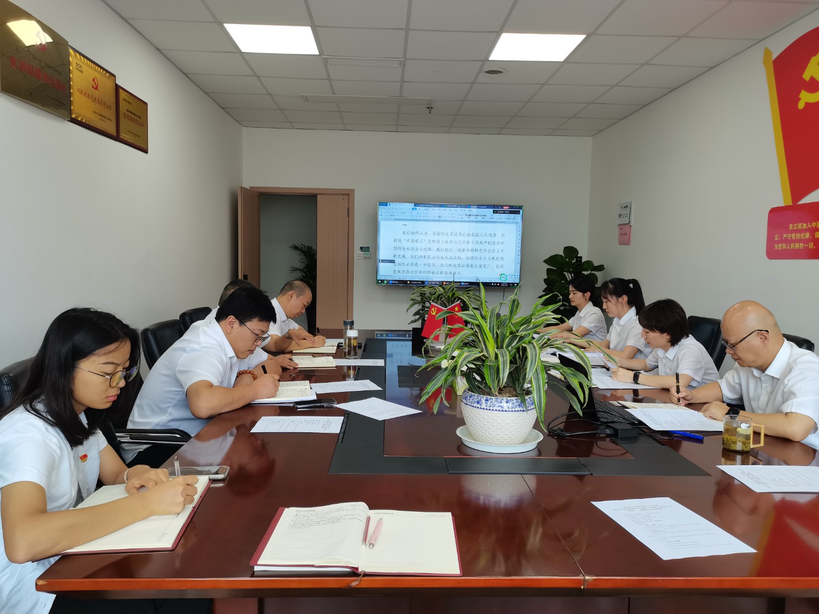 會(huì)議首先進(jìn)行了第一議題學(xué)習(xí),由支部書記周弋力領(lǐng)學(xué)了習(xí)近平總書記重要文章《必須堅(jiān)持自信自立》;重點(diǎn)學(xué)習(xí)了中國共產(chǎn)黨第二十屆中央委員會(huì)第三次全體會(huì)議公報(bào),傳達(dá)了王曉暉在全省縣域經(jīng)濟(jì)高質(zhì)量發(fā)展推進(jìn)會(huì)議上的講話精神;隨后,由支部書記講授了《新修訂<中國共產(chǎn)黨紀(jì)律處分條例>解讀》紀(jì)律黨課,紀(jì)檢委員盛詩棋進(jìn)行《以案為鏡鑒以廉為底線》案例剖析。參會(huì)黨員緊扣黨的六項(xiàng)紀(jì)律,結(jié)合自身實(shí)際情況逐一交流發(fā)言,分別從工作紀(jì)律、日常言行、家風(fēng)家教等方面進(jìn)行了研討。最后,支部委員會(huì)向大會(huì)通報(bào)了支部黨員發(fā)展相關(guān)情況。