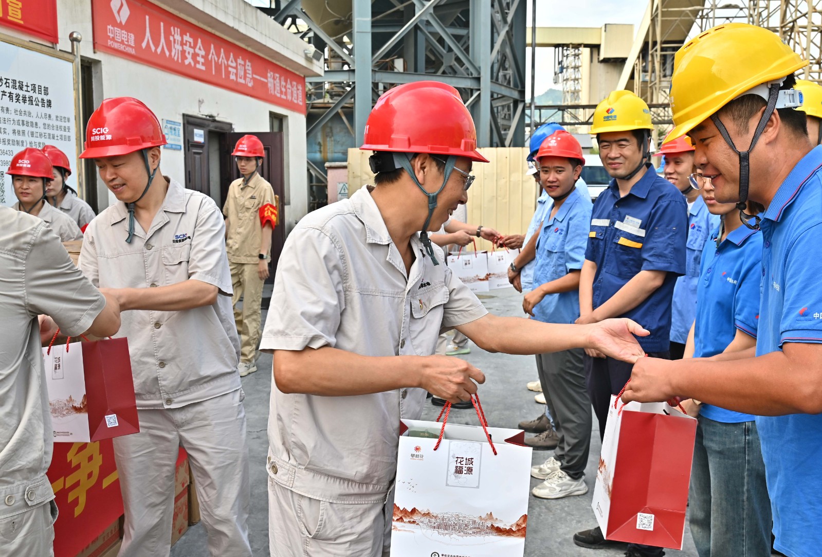 徐孝剛代表川投能源和攀水電公司,向堅(jiān)守崗位、辛勤付出、無私奉獻(xiàn)的一線職工表示衷心的感謝,叮囑他們做好防護(hù),注意安全。他指出,在學(xué)習(xí)宣傳貫徹黨的二十屆三中全會精神之際,銀江水電站正值實(shí)現(xiàn)蓄水發(fā)電目標(biāo)的關(guān)鍵節(jié)點(diǎn),面對工程建設(shè)工期緊、任務(wù)重的雙重挑戰(zhàn),各參建單位要持續(xù)發(fā)揚(yáng)“特別能吃苦、特別能戰(zhàn)斗、特別能奉獻(xiàn)”的銀江精神,團(tuán)結(jié)協(xié)作、密切配合,進(jìn)一步加強(qiáng)溝通協(xié)調(diào),形成工作合力,共同解決工程建設(shè)中遇到的困難和問題,抓好工程建設(shè)、安全環(huán)保、質(zhì)量和進(jìn)度,讓每一個環(huán)節(jié)都經(jīng)得起歷史和人民的檢驗(yàn),奮力實(shí)現(xiàn)蓄水發(fā)電目標(biāo),交上一份滿意的銀江答卷,向祖國75周歲華誕獻(xiàn)上川投賀禮。