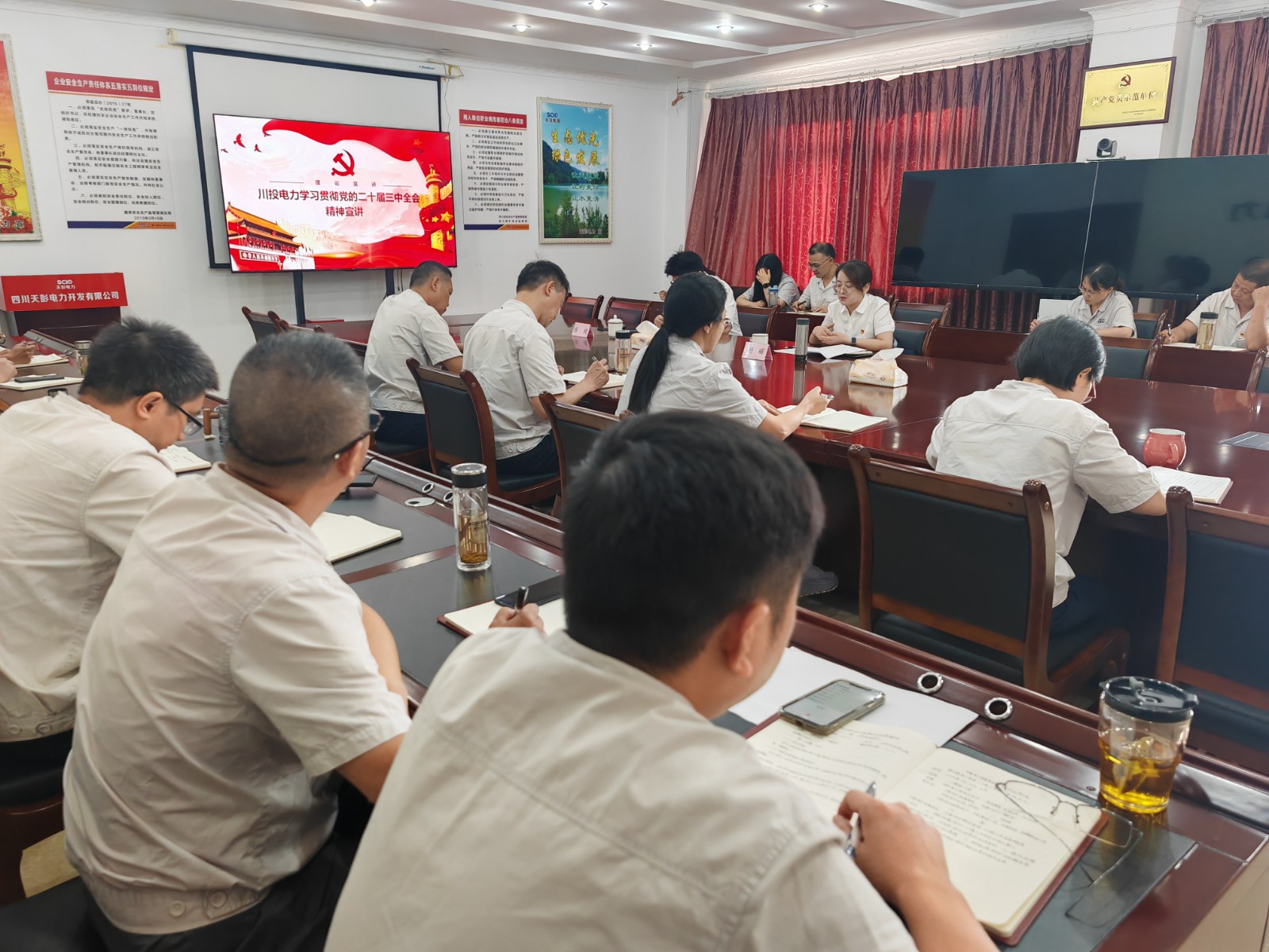 就天彭電力貫徹落實全會精神,謝麗結合公司實際提出了四點要求:一是學深悟透全會精神。要堅持集中學習和個人自學相結合,注重融會貫通、推動學以致用,把思想和行動統(tǒng)一到全會部署的目標任務上來,切實把學習成果轉化為推動企業(yè)發(fā)展的強大動力。二是攻堅克難抓好改革。要聚焦做強做優(yōu)做大,牢牢把握符合公司屬性和清潔能源主營業(yè)務方向的戰(zhàn)略機遇,認真落實優(yōu)化經濟布局結構、完善科技創(chuàng)新機制、提升公司治理現(xiàn)代化水平的各項改革舉措,切實提高發(fā)展質量和經濟效益。三是統(tǒng)籌發(fā)展和安全。要層層壓緊壓實安全生產責任,落實落細各項防范舉措,扎實抓好防汛減災工作,確保完成年度安全生產經營目標任務。四是筑牢廉潔自律防線。嚴格遵規(guī)守紀,常態(tài)化開展黨紀學習教育、黨性教育和廉潔教育,引導黨員干部牢固樹立紀律規(guī)矩意識;認真抓好巡視巡察整改“回頭看”工作,規(guī)范“三重一大”事項決策,切實防范各類廉潔風險,營造風清氣正的良好政治生態(tài)。