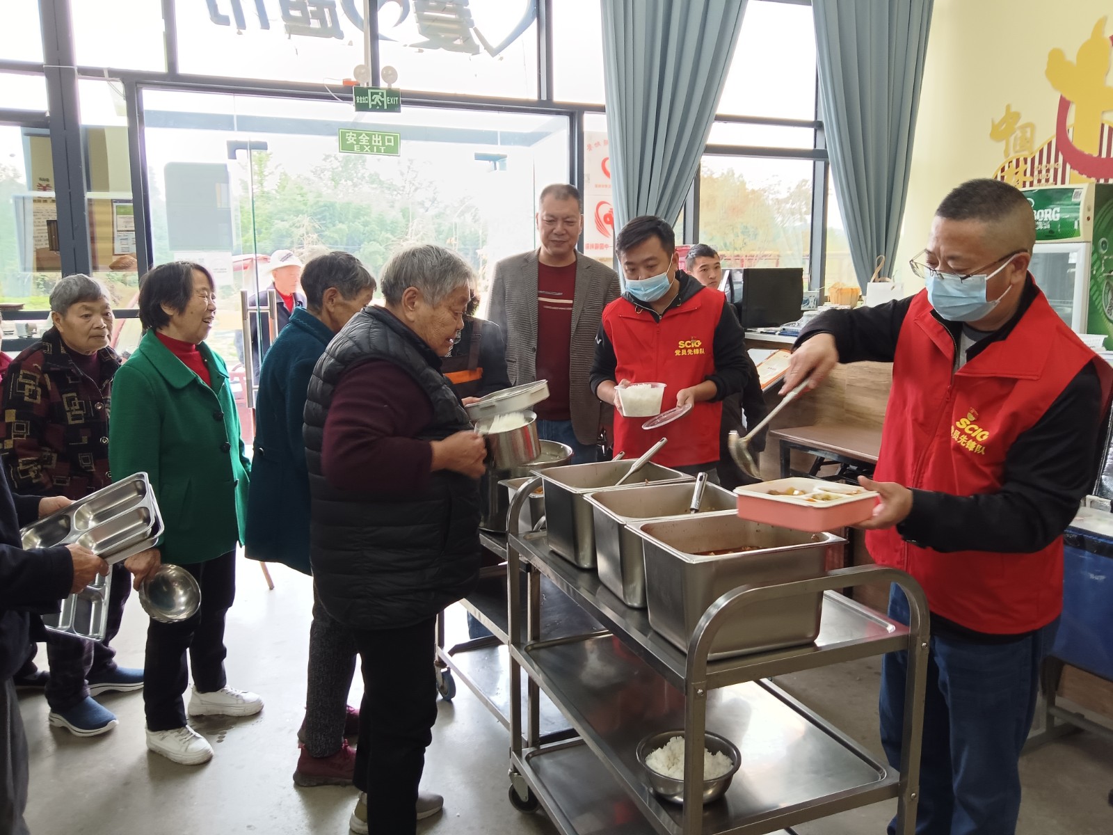 井然有序的活動現(xiàn)場,身著醒目紅色馬甲的黨員們迅速分工、密切合作,有的拿起掃帚、拖把和抹布開展衛(wèi)生清潔,從地面到墻面、從桌椅到餐具的每一個角落,為老人們營造整潔舒適的就餐環(huán)境;有的為行動不便的老年人及時送餐上門,讓他們能心情愉悅地享用美食;有的則陪伴在老人身邊與他們親切交談,關(guān)愛他們的健康與需求,傾聽他們的心聲與故事?!鞍謰屖程谩眱?nèi)忙碌穿梭的黨員身影,構(gòu)成了一幅幅溫馨動人的畫面。