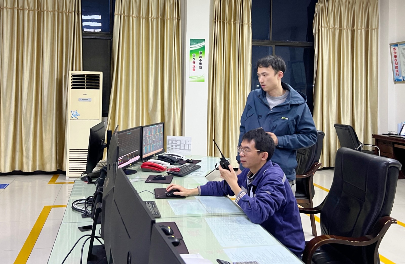 11月13日晚8點,技改現(xiàn)場燈火通明,設(shè)備調(diào)試工作緊張而有序。在廠家技術(shù)人員的指導下,電廠工作人員在無數(shù)次的調(diào)整核對中發(fā)現(xiàn)問題、查找原因、校正參數(shù)、反復試驗,終于按期順利完成壩區(qū)技改工作。在技改實施過程中,槽漁灘電廠黨員先鋒隊鄧彬和許安寧等隊員,每天蹲守現(xiàn)場,早出晚歸,進行技術(shù)指導和工程質(zhì)量管控,協(xié)調(diào)廠家解決程序?qū)訂栴}。大家從早到晚,一遍一遍核對信號、提門、落門,先后完成1-9號泄洪閘門監(jiān)控的靜態(tài)、動態(tài)調(diào)整等工作,有力確保技改工作如期完成。