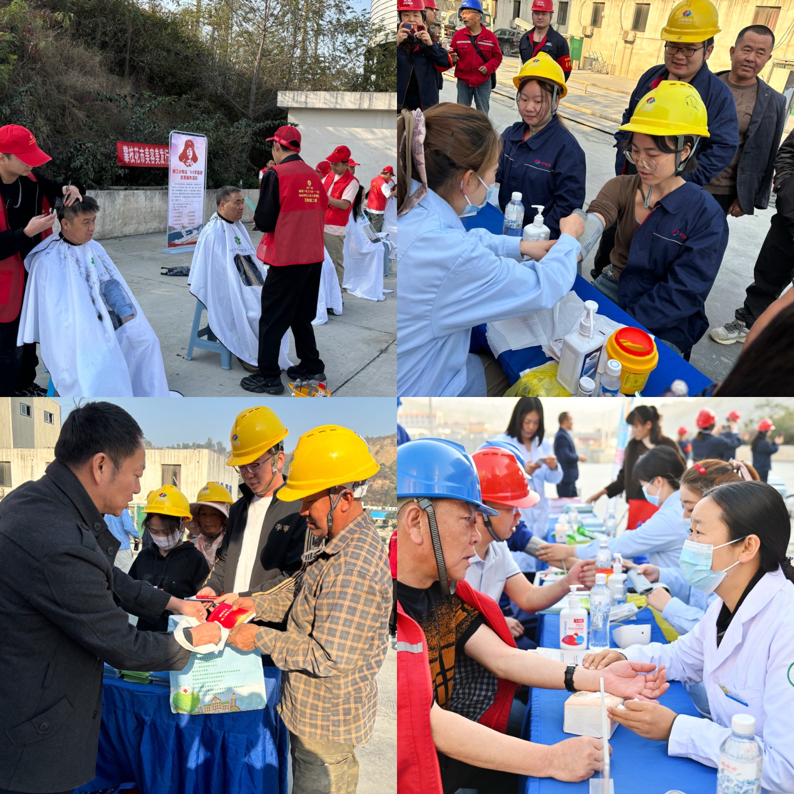 活動現(xiàn)場,銀江工地愛心驛站變身“時尚沙龍”?,攀枝花市美容美發(fā)行業(yè)協(xié)會10名專業(yè)理發(fā)師現(xiàn)場打造“10分鐘快剪”服務(wù)圈,公司工會同步提供消毒濕巾、免洗洗手液,確保大家剪完發(fā),清清爽爽上工去;銀江鎮(zhèn)衛(wèi)生院創(chuàng)新推出“移動健康管家”服務(wù),由4名醫(yī)務(wù)人員分別進行血糖、血壓測量,為居住半年以上時間的居民建立健康檔案,簽約家庭醫(yī)生服務(wù),為慢性病患者建檔,更有中醫(yī)把脈問診開展健康咨詢解答等;安全健康知識“沉浸教學(xué)”?,多名志愿者為一線建設(shè)者開展中暑、熱射病、春季流感預(yù)防等職業(yè)健康治知識宣傳,發(fā)放健康教育宣傳資料,為職工發(fā)放《安全生產(chǎn)法》《四川省安全生產(chǎn)條例》《安全生產(chǎn)與勞動保護職工學(xué)習(xí)手冊》《職業(yè)病防治宣傳手冊》《應(yīng)急逃生知識宣傳冊》等資料1000余份,將雷鋒精神轉(zhuǎn)化為常態(tài)化服務(wù),?贏得了一線職工的一致好評。?