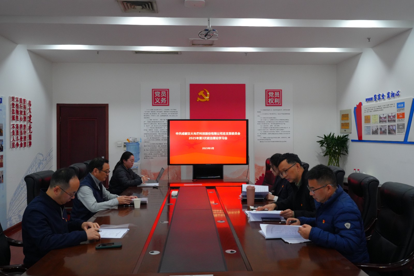 3月10日,交大光芒黨總支召開2025年第三次政治理論學習會暨2024年度組織生活會會前專題學習會議,公司黨總支書記、常務副總經(jīng)理王濤主持,公司黨總支委員、經(jīng)營班子成員出席會議。