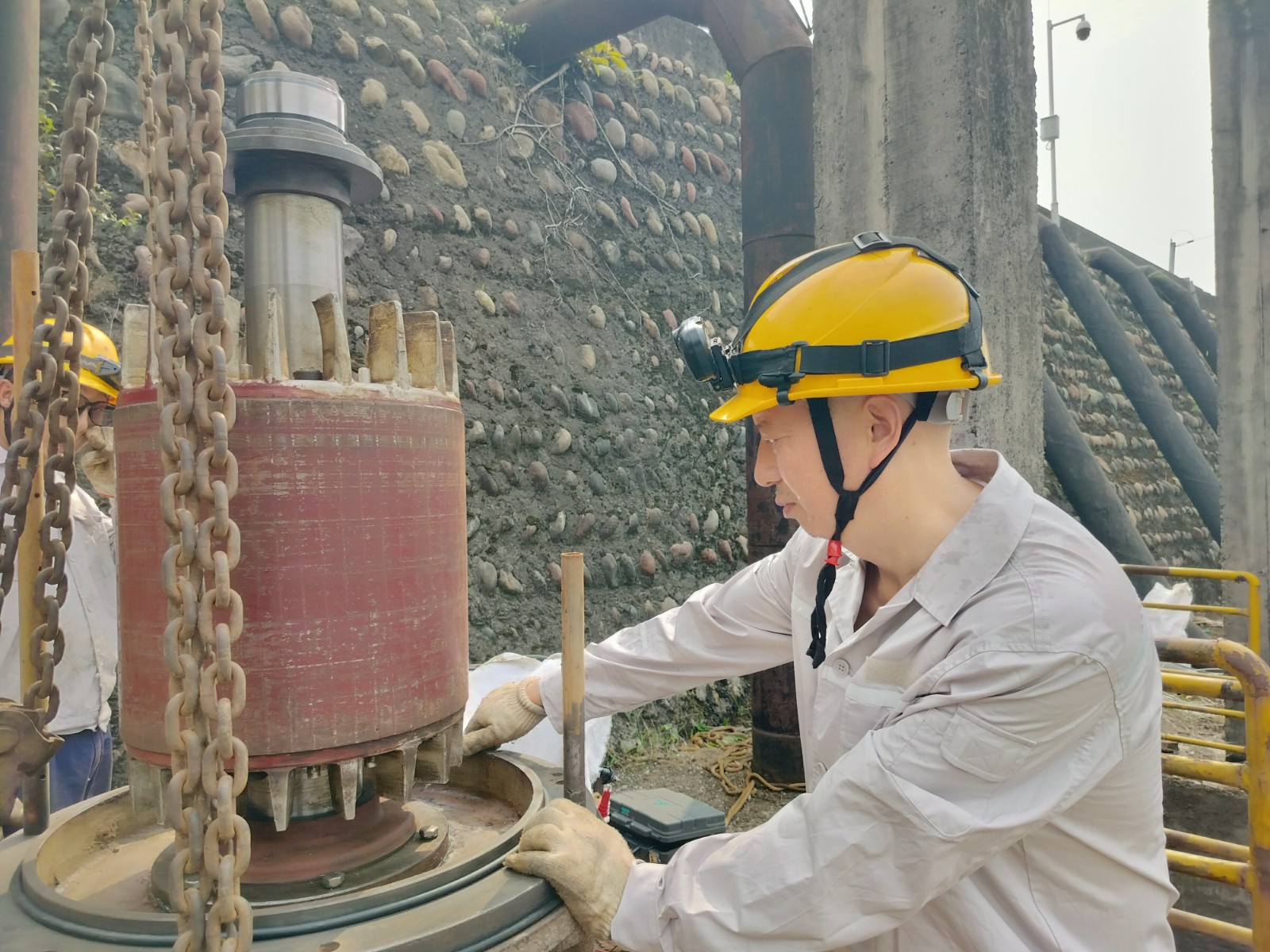 搶修現(xiàn)場,維護(hù)團(tuán)隊分工協(xié)作,配合默契。有的俯身檢測設(shè)備參數(shù),有的專注分析運(yùn)行數(shù)據(jù),汗水早已浸透工裝,卻無人停下手中的工作。拆卸、檢測、診斷......每個動作都精準(zhǔn)到位。經(jīng)過細(xì)致排查,故障癥結(jié)終于鎖定。
