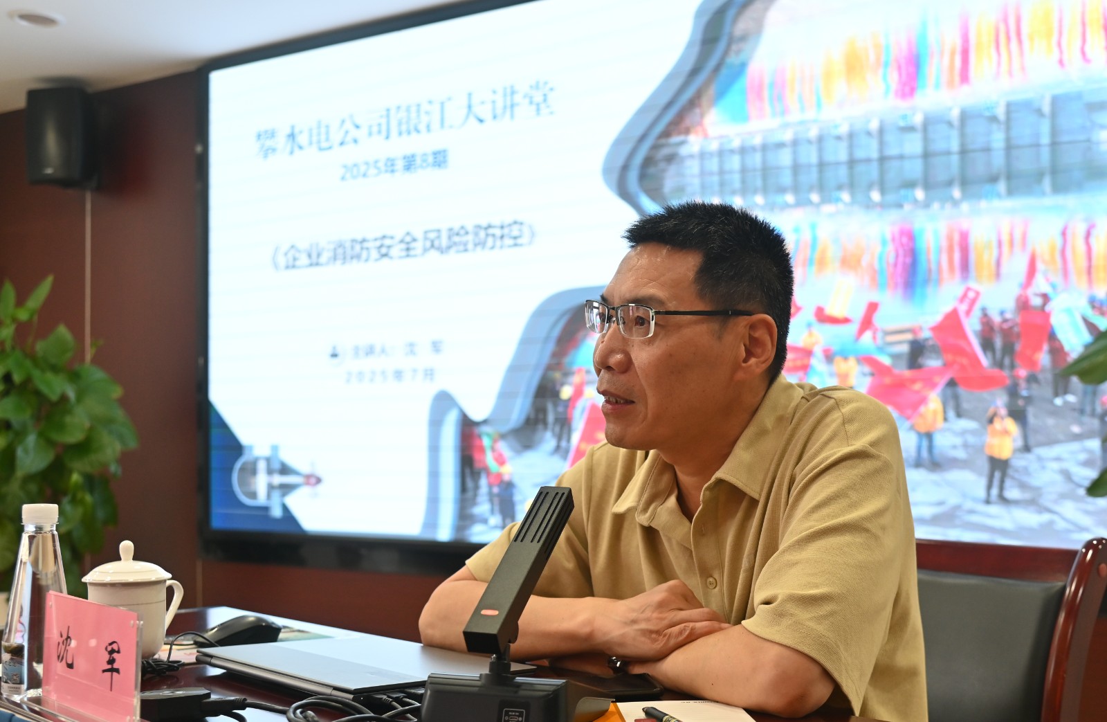 為切實提升全員消防應(yīng)急處置能力,筑牢企業(yè)安全防線,7月27日,攀水電公司舉辦2025年第8期“銀江大講堂”,特邀四川省消防工作專家?guī)熨Y深專家、高級工程師沈軍講授企業(yè)消防安全風(fēng)險防控知識,四川省消防救援總隊攀枝花市支隊周立波政委出席指導(dǎo),公司領(lǐng)導(dǎo)、各部門員工、參建單位代表共計60余人參訓(xùn)。