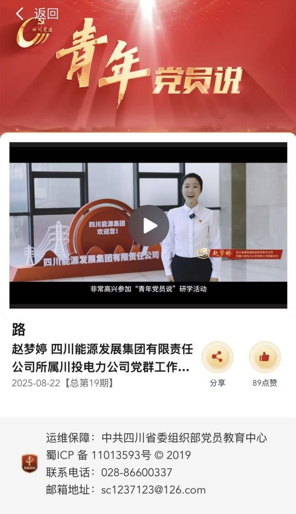 近期,四川省委組織部舉辦的“青年黨員說”研學(xué)活動(dòng)正在四川黨建官網(wǎng)等平臺(tái)集中展播。省國(guó)資委黨委共推薦10名青年黨員代表圍繞“學(xué)習(xí)新思想,爭(zhēng)當(dāng)改革先鋒”為主題,談體會(huì)、談感悟。其中,由四川能源發(fā)展集團(tuán)上報(bào)、川投能源推薦的作品《路》,通過講述“兩路”精神的歷史內(nèi)涵,結(jié)合川投電力腳基坪電廠震后緊急搶險(xiǎn)、天彭電力鳳鳴湖水庫飲水廊道清淤、玉田電廠為涼山州彝族村民送水送電等鮮活事例,展現(xiàn)能源人在逆行搶險(xiǎn)、為民服務(wù)和民族團(tuán)結(jié)中的責(zé)任擔(dān)當(dāng),號(hào)召新時(shí)代國(guó)企人賡續(xù)“兩路”精神,汲取奮進(jìn)力量,展現(xiàn)了能源國(guó)企的使命擔(dān)當(dāng)。