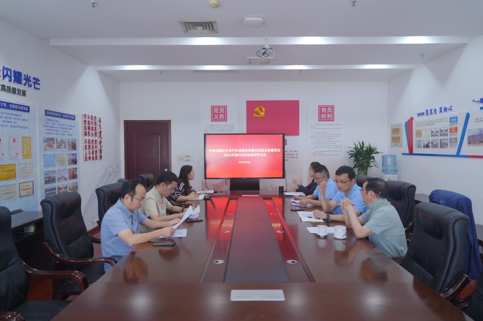 9月19日,交大光芒黨總支召開(kāi)2025年第9次政治理論學(xué)習(xí)會(huì)。會(huì)議由黨總支書(shū)記、常務(wù)副總經(jīng)理王濤主持,黨總支委員、經(jīng)營(yíng)班子成員參加學(xué)習(xí)。
