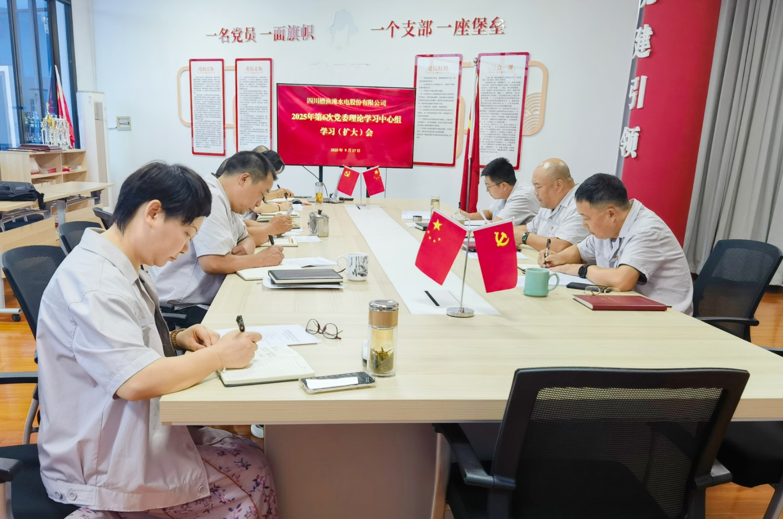 會議指出,公司正處在轉(zhuǎn)型升級、提質(zhì)增效的關(guān)鍵時期,面對新形勢新任務,尤其需要從抗戰(zhàn)精神中汲取力量,錘煉過硬作風,凝聚發(fā)展合力。會議要求:一是突出政治引領(lǐng),強化作風建設(shè)。要提高政治站位,深化理論學習,把思想和行動統(tǒng)一到上級黨委的決策部署上來,把弘揚偉大抗戰(zhàn)精神與鞏固拓展中央八項規(guī)定精神學習教育成果結(jié)合起來,以作風建設(shè)新成效推進公司高質(zhì)量發(fā)展;二是聚焦主責主業(yè),落實任務指標。要強化合規(guī)管理,修訂和完善各項規(guī)章制度,緊盯年度目標任務,狠抓安全生產(chǎn)不放松,優(yōu)化水庫調(diào)度和發(fā)電運行,深化降本增效,防范化解重大風險,切實把學習成效體現(xiàn)到完成生產(chǎn)經(jīng)營指標的實際工作中來;三是勇于攻堅克難,激發(fā)創(chuàng)新活力。要學習革命先輩“敢于斗爭、善于創(chuàng)造”的寶貴品質(zhì),進一步提高公司全體員工主動擔當、積極作為的敬業(yè)精神,培育和發(fā)展新質(zhì)生產(chǎn)力,努力探索綠色發(fā)展新路徑,不斷增強企業(yè)核心競爭力和可持續(xù)發(fā)展能力。四是加強監(jiān)督檢查,確保和諧穩(wěn)定。國慶、中秋雙節(jié)將至,公司領(lǐng)導班子成員要深入基層,加強監(jiān)督檢查,及時了解職工所思所想,妥善解決可能存在的訴求和矛盾,做好節(jié)日期間的信訪維穩(wěn)工作,確保節(jié)日期間公司和諧穩(wěn)定。