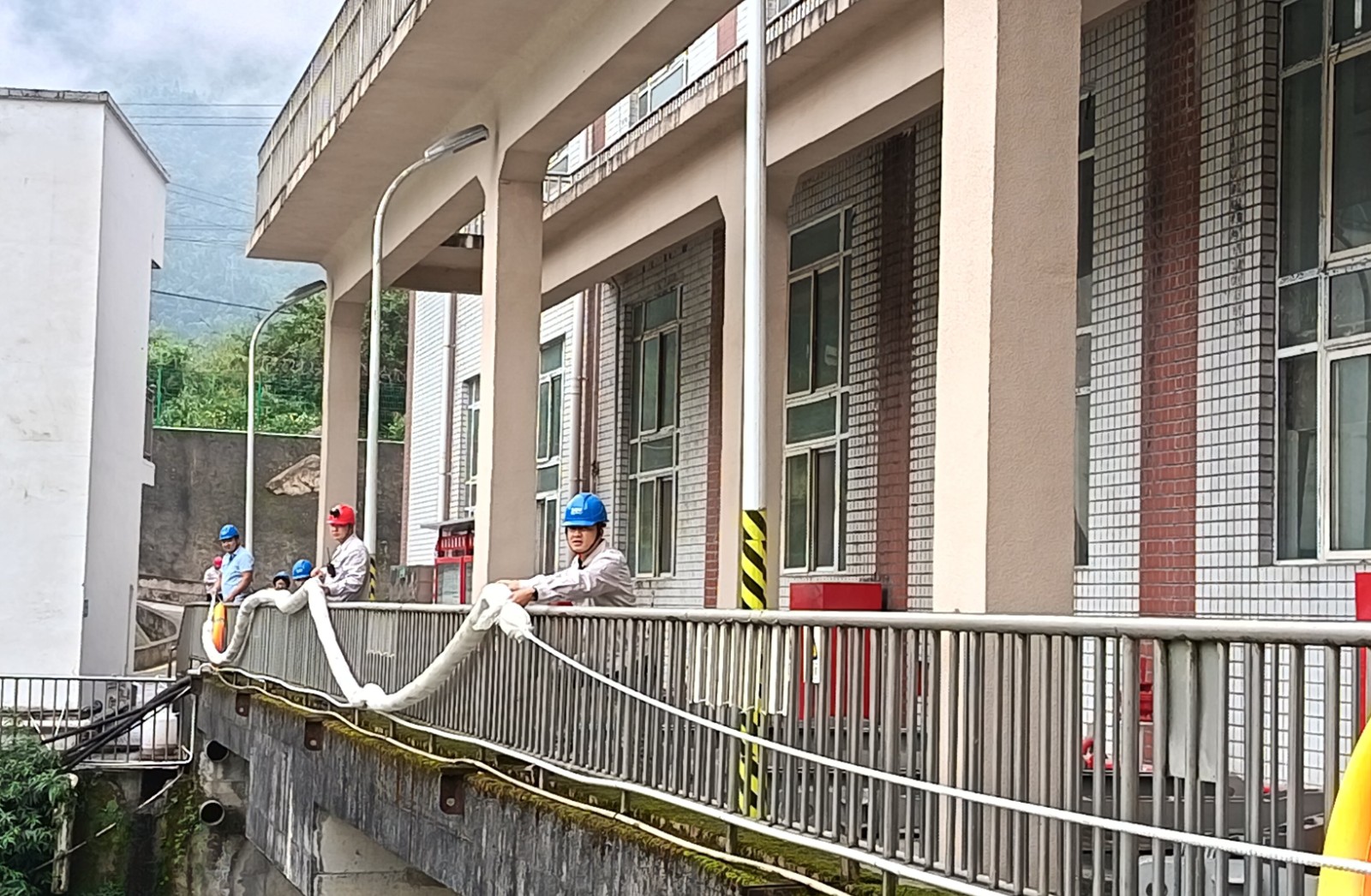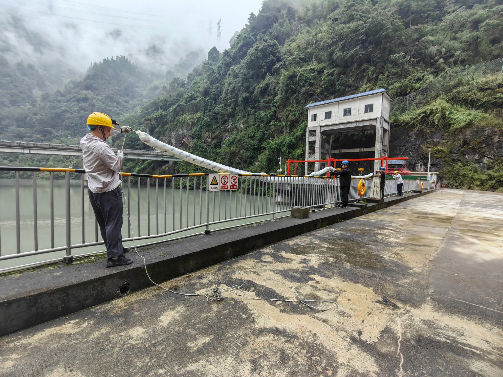 本次演練背景設定為電站大壩2#泄洪閘左側(cè)齒輪箱突發(fā)漏油,約50升齒輪油濺落至庫區(qū)水面并擴散,值班人員發(fā)現(xiàn)險情后立即啟動應急響應。中控室迅速協(xié)調(diào)上下游鍋浪蹺、匯溪電廠調(diào)整出力流量并協(xié)助布設攔油設施;運行組與應急搶險組攜帶吸油氈、攔油索等器材趕赴現(xiàn)場,對漏油點進行封堵,同時在閘門前和水面關(guān)鍵區(qū)域鋪設攔油繩,防止污染擴散;后勤保障組全程待命,確保物資供應和人員安全。經(jīng)過30分鐘緊張有序的處置,油污被徹底清理,庫區(qū)水質(zhì)未受影響,演練圓滿完成。