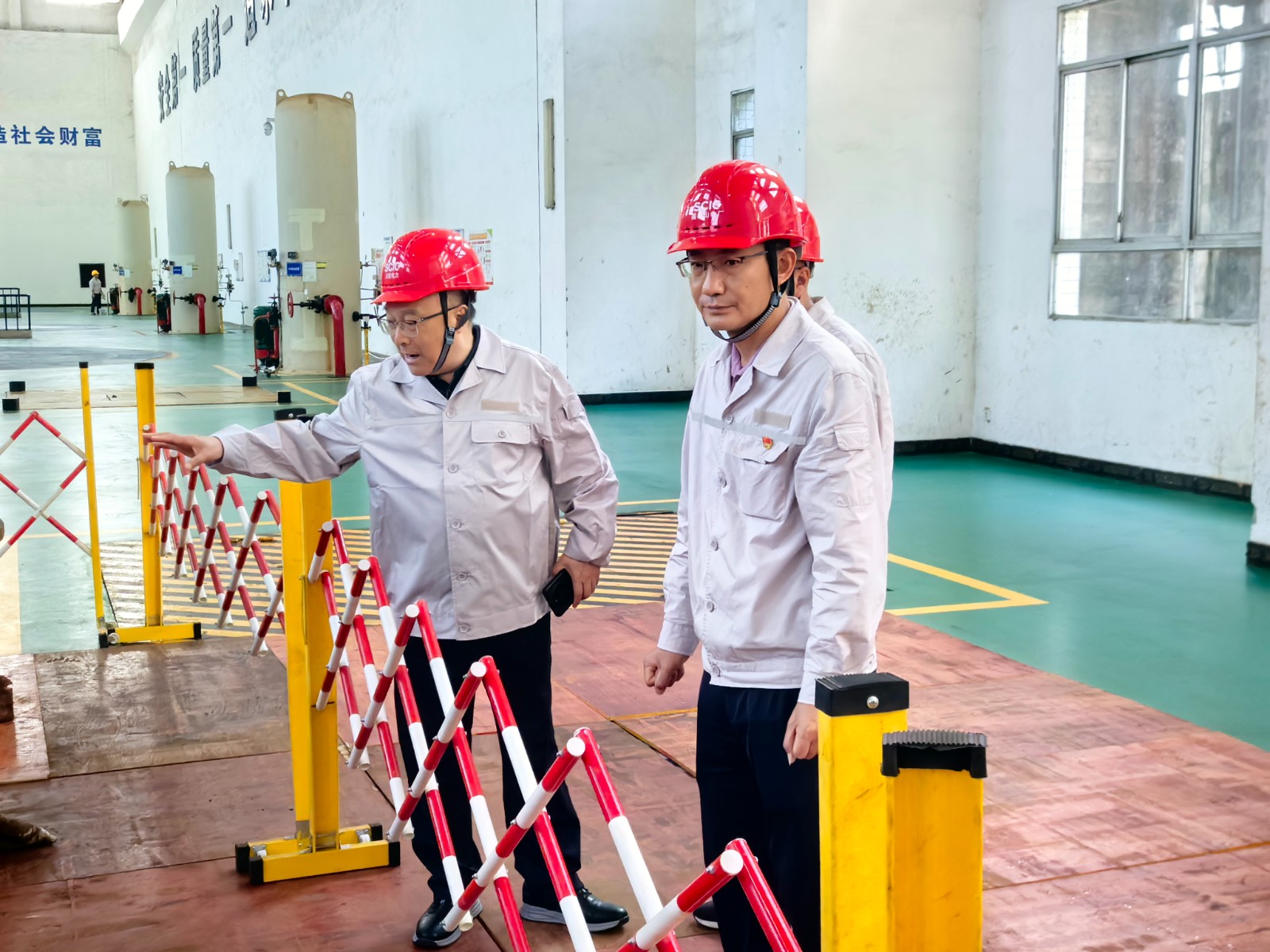 蔡承德一行深入生產(chǎn)一線,重點檢查了大壩、防汛設(shè)施運行狀況及發(fā)電機組、主變壓器等核心設(shè)備工況,詳細核查了設(shè)備巡檢記錄、隱患治理臺賬和應(yīng)急預案等管理資料,并實地督導110KV出線間隔等關(guān)鍵設(shè)施的安全防護措施落實情況。在檢查過程中,蔡承德詳細詢問了各電廠在“雙節(jié)”期間的保供方案、人員值班安排及應(yīng)急物資儲備情況,對各電廠前期開展的設(shè)備隱患整改工作給予肯定。