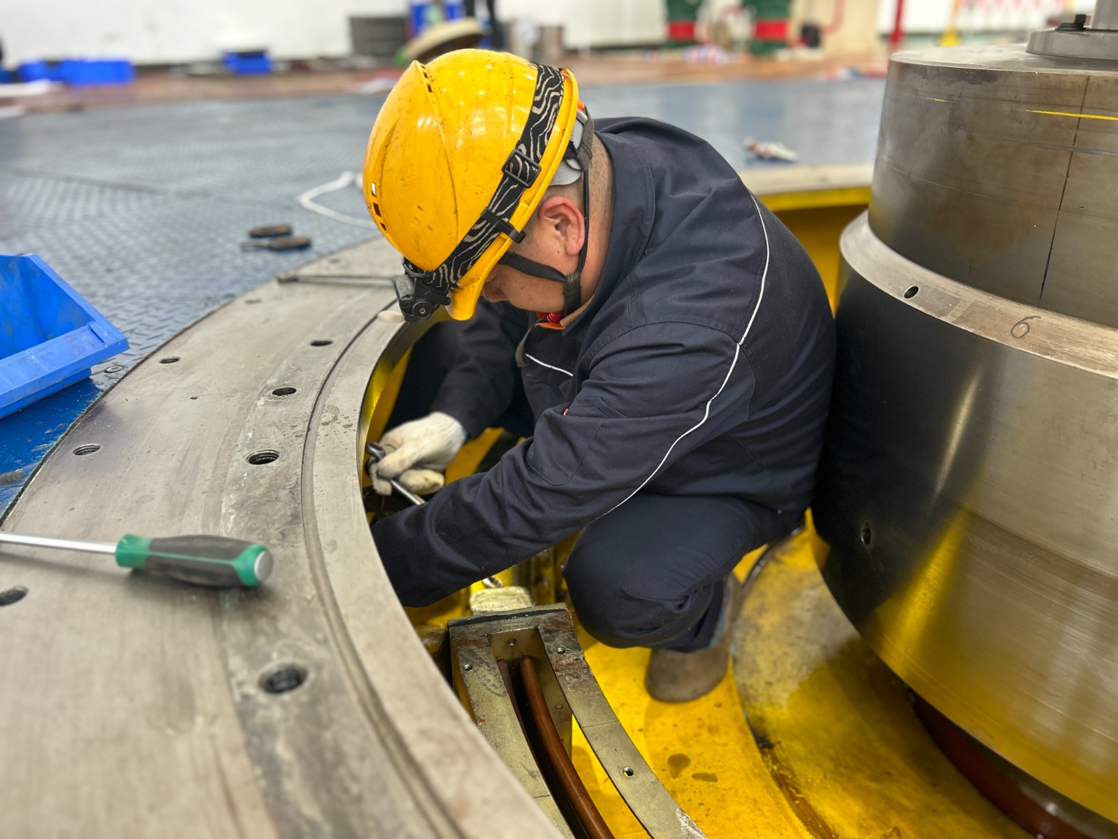 1119日檢修工作啟動(dòng)以來(lái),電廠檢修團(tuán)隊(duì)秉持“應(yīng)修必修、修必修好”的核心原則,以“標(biāo)準(zhǔn)化、精細(xì)化”為作業(yè)導(dǎo)向,對(duì)2號(hào)水輪發(fā)電機(jī)組及輔助設(shè)備開(kāi)展全面檢查、清理、試驗(yàn)與缺陷消除工作。檢修過(guò)程中,團(tuán)隊(duì)強(qiáng)化作業(yè)前風(fēng)險(xiǎn)分析與預(yù)控,嚴(yán)格執(zhí)行日計(jì)劃管控、“兩票”制度及“三講一落實(shí)”要求,堅(jiān)決杜絕“三違”行為;嚴(yán)格遵循公司標(biāo)準(zhǔn)化檢修規(guī)范,提前編制并細(xì)化執(zhí)行《檢修作業(yè)指導(dǎo)書(shū)》,通過(guò)三級(jí)驗(yàn)收機(jī)制對(duì)各工序、各環(huán)節(jié)實(shí)施全流程質(zhì)量管控,確保檢修工作安全、優(yōu)質(zhì)、高效推進(jìn)。