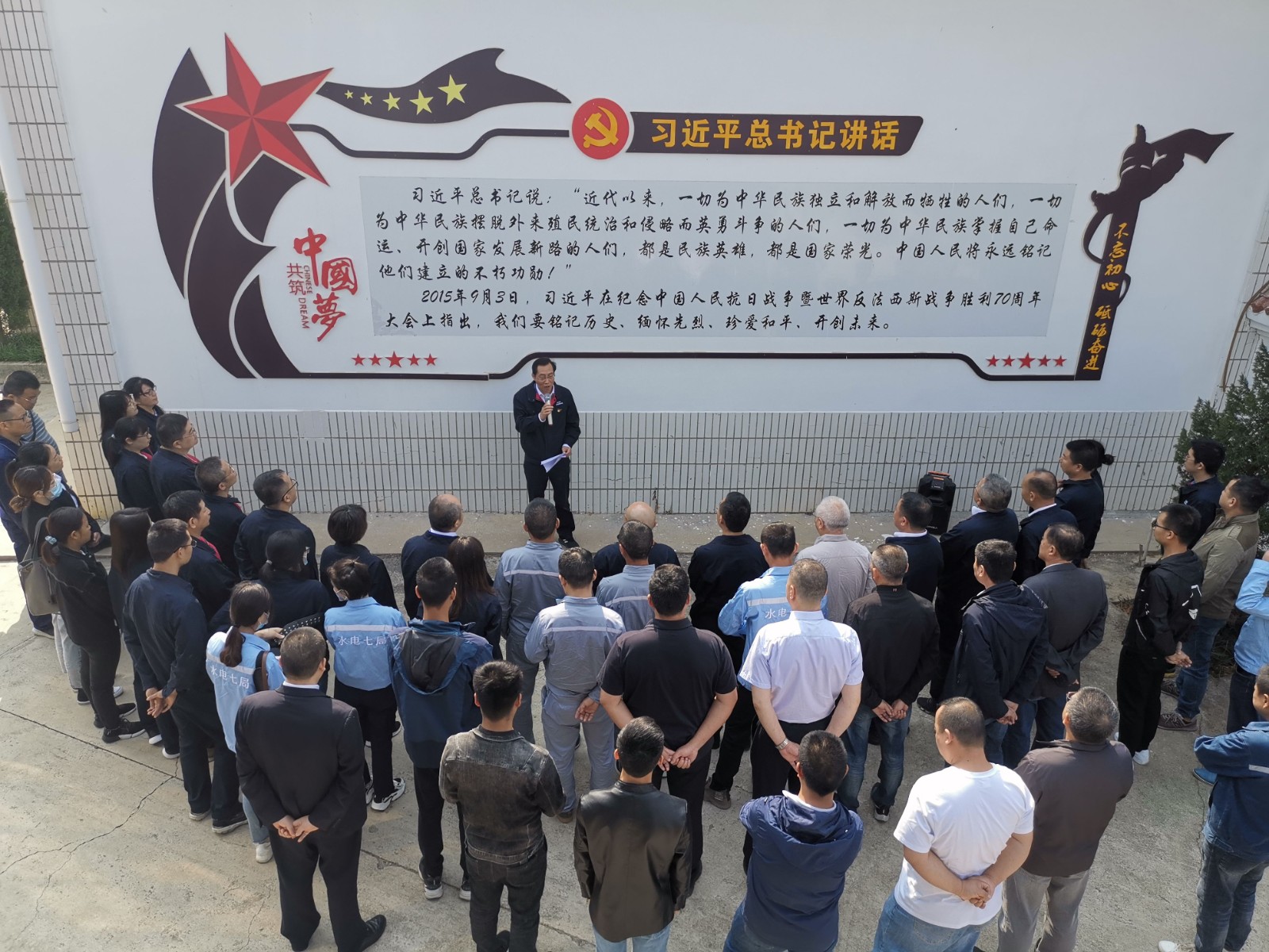 蒼松翠柏掩映下革命烈士紀(jì)念碑巍然聳立,伴隨著鏗鏘激昂的《義勇軍進(jìn)行曲》,全體人員齊聲高唱中華人民共和國國歌。國歌唱畢,全場肅立,向革命英烈默哀致敬。之后,公司黨總支副書記、總經(jīng)理蔡承德帶領(lǐng)全體黨員重溫了入黨誓詞。公司黨總支書記、董事長徐孝剛代表全體人員向革命英烈敬獻(xiàn)花籃,并駐足凝視、仔細(xì)整理花籃緞帶。敬獻(xiàn)花籃儀式結(jié)束后,全體人員對(duì)烈士紀(jì)念碑和烈士墓進(jìn)行了祭掃,徐孝剛以《為了共同的事業(yè)》為題,背靠習(xí)近平總書記紀(jì)念抗日戰(zhàn)爭暨世界反法西斯戰(zhàn)爭勝利70周年大會(huì)講話照壁,講授了一堂生動(dòng)的黨史學(xué)習(xí)微黨課。