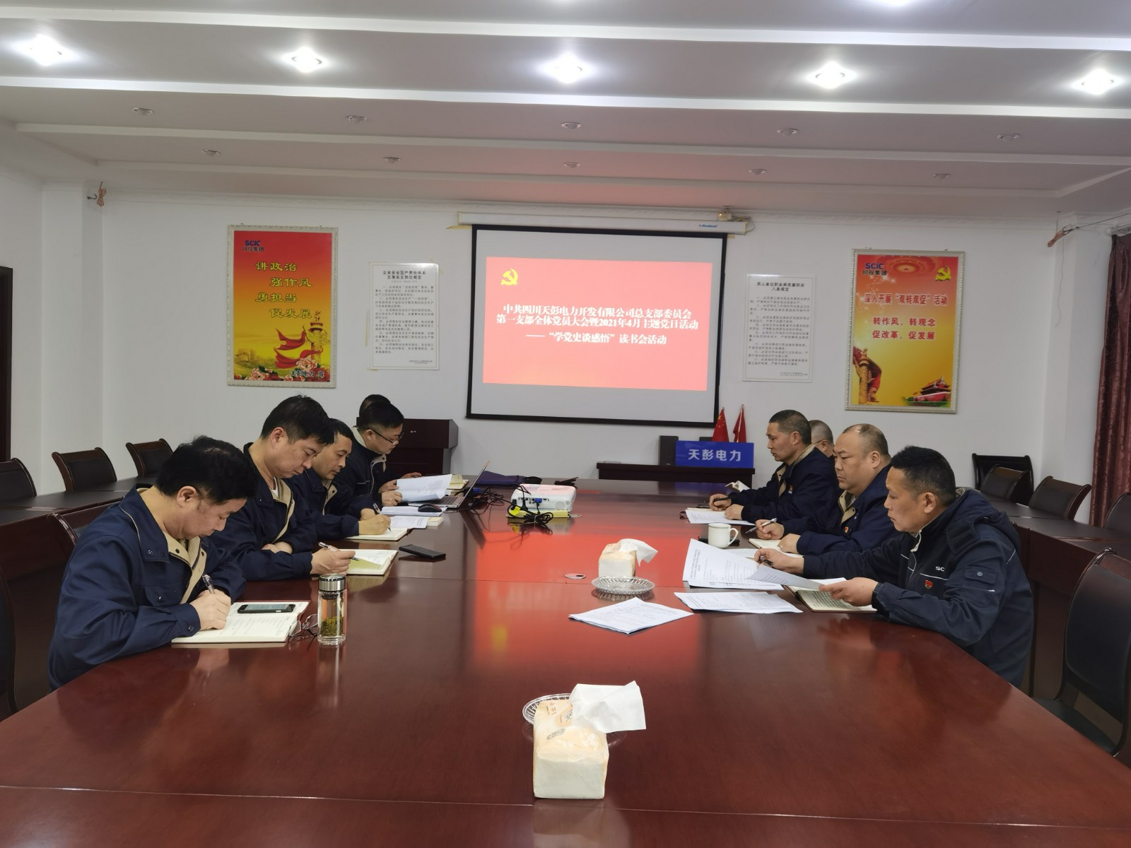 按照公司黨總支關(guān)于黨史學(xué)習(xí)教育的安排,4月27日下午,川投能源天彭電力第一黨支部全體黨員在二樓會議室開展了“學(xué)黨史 談感悟”黨史學(xué)習(xí)教育讀書會主題黨日活動, 公司黨總支書記、總經(jīng)理陳忠參加了活動,活動由第一黨支部書記何剛主持。