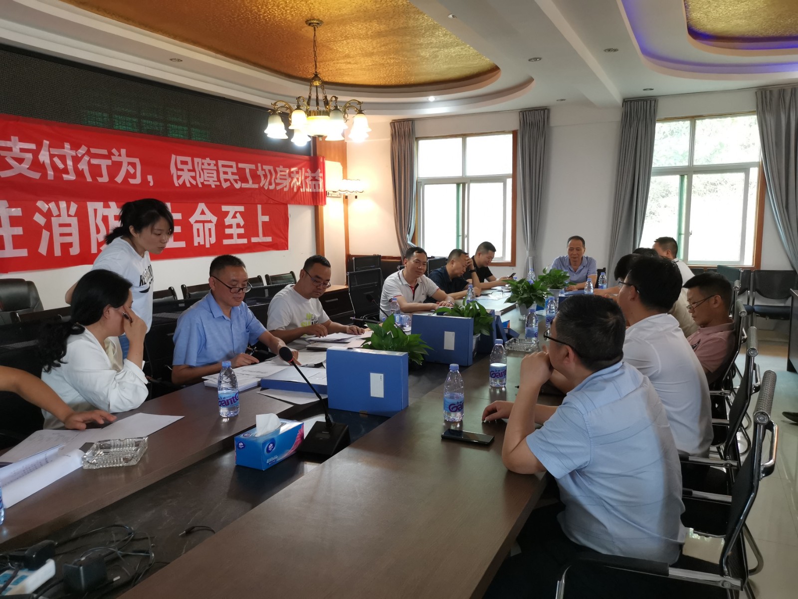 會上,檢查組組長、攀枝花市水利局黨組成員、副局長尹磊充分肯定了攀水電公司、葛洲壩路橋項目部在落實《保障農(nóng)民工工資支付條例》,維護農(nóng)民工合法權(quán)益所做的工作。同時對攀水電公司及葛洲壩路橋項目部在后續(xù)工作提出了以下要求:一是提高政治站位,強化責任擔當。把農(nóng)民工工資支付當成頭等大事來抓,切實維護好農(nóng)民工合法權(quán)益,總承包單位作為農(nóng)民工工資支付的主體責任單位,應(yīng)持之以恒的抓好農(nóng)民工工資支付工作;二是常抓不懈,務(wù)實求效。攀水電公司、葛洲壩路橋項目部要把農(nóng)民工工資支付和維護農(nóng)民工合法權(quán)益工作當成日常工作常抓不懈,在具體工作中做到務(wù)實求效;三是加強交流學(xué)習(xí),統(tǒng)籌銀江工程農(nóng)民工工資支付工作。攀水電公司要把葛洲壩路橋項目部積累的成功管理經(jīng)驗充分宣貫到其他標段承包人,讓銀江水電站工程在農(nóng)民工工資支付、維護合法權(quán)益方面在全市在建工程中樹立標桿、樣板。